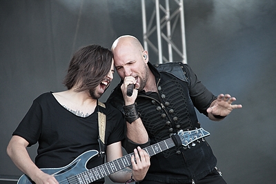 Erster Pflichttermin am Samstag waren die Österreicher von SERENITY Frontmann erklimmt stimmlich ebensolche Höhen wie so mancher seiner bergsteigenden Landsläute und an der Spielfreude der Band änderte auch das pralle Sonnenlicht nichts. Dass es mit dem Opener „United“, mit „Hero“ und „Lionheart“ gleich drei Songs des aktuellen Albums gab verwunderte kaum. Am Napalm Records Stand wurde anschließend sogar das passende Shirt für 5€ verramscht – allerdings ist das Coverartwork im Vergleich zu manch älterer Scheibe auch nicht besonders inspiriert. „Codex Atlanticus“ wurde immerhin mit zwei Songs („Spirit in the Flesh“ und „Inquity“) bedacht, während „Fallen Sancuary“ mittels „Rust of Coming Ages“ gewürdigt wurde. Das Beste hoben sich die Österreicher für das Ende auf und da bekamen die Fans „Legacy of Tudors“ vom genialen „War of Ages“ Album geboten. In der bratenden Mittagssonne bemühten sich zwar keine Massen vor die DARK STAGE, aber doch eine recht ansehnliche Menge Musikfans mit gutem Geschmack. Die Art von progressivem Melodic Metal der sich SERENITY verschrieben haben ist live – und gerade auf so einem Festival – wohl immer eine etwas schwer verkäufliche Kost. Das bierlaunige Partyvolk feiert simple Uftata-Bands leider mehr ab als so qualitativ hochwertige Kapellen wie SERENITY. Egal, denn ich fand den Auftritt der Truppe sehens- und hörenswert. Gerne mehr davon.