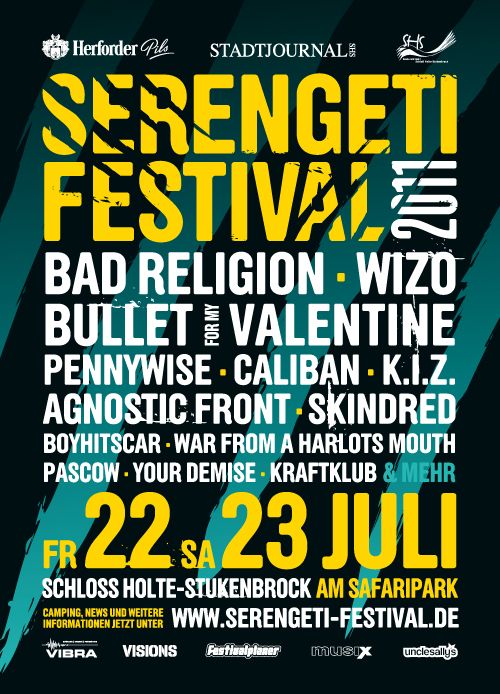 Sonne, Sonne, nichts als Sonne. So zeigte sich die letzte Festivalsaison. Dieses Jahr allerdings schienen die Festivals unter keinem guten Wetterstern zu stehen. Erst Anfang Juli ist das With Full Force im wahrsten Sinne des Wortes ins Wasser gefallen und nun wurde für das Serengeti Festival auch kühles und regnerisches Wetter vorhergesagt. Zum Glück zeigte sich der Wettergott gnädig und verschonte uns trotz kühler Temperaturen größtenteils vom Regen. So öffnete also das sichtlich wachsende Serengeti im beschaulichen Städtchen Schloß Holte-Stukenbrock vom 22.-23.7.2011 bei akzeptablem Wetter mit einigen Veränderungen seine Pforten. Eine Veränderung war zum Beispiel die neue Lokation. Während im vergangenen Jahr aufgrund knapp kalkulierter offizieller Campingmöglichkeiten noch Wiesen und Parkplätze rund um das Festivalgelände belagert wurden (was durchaus auch seinen Charme hatte), hatte man beim neuen Gelände direkt neben dem Safaripark fast an alles gedacht. Neben einem größeren Festivalgelände wurde für einen eigenen Campingplatz mit Duschen, Toiletten, einer Art Kiosk und für ausreichend Parkplätze gesorgt. Schade nur, dass man nicht neben seinem Auto zelten durfte, denn so wurden die Arme, bepackt mit Zelt, Grillgut, Getränken und Klamotten auf dem Weg zwischen Parkplatz und Zeltplatz ganz schön lang. Aber davon mal abgesehen hat das Serengeti absolut gehalten was es versprach. Mit einem bunten musikalischen Mix und hochkarätigen Bands lockten die Veranstalter Besucher von nah und fern. Genauso wie im vergangenen Jahr brachte das Serengeti die unterschiedlichsten Genres wie Punk, Mittelalterrock, Hard- und Metalcore, Psychobilly und sogar Hip-Hop und Rap unter einen Hut und begeisterte damit seine Fanscharen! Was im vergangenen Jahr Boppin’B (D) war, waren dieses Jahr Mad Sin. Anstelle von Sonderschule waren WIZO geladen. Die Mr. Irish Bastard und Subway to Sally des letzen Jahres fanden sich dieses Mal in der Letzten Instanz und In Extremo. Tja, und was im vergangenen Jahr Skindred waren, waren auch beim diesjährigen Serengeti Skindred. Und glaubt mir, das war noch lange nicht Alles!