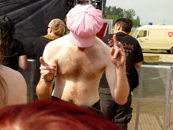 Bis hierher wirkten Debauchery zwar bemüht, aber glanzlos. Den größten Bock schoss sich die Band aber gegen Ende. "Jetzt kommt der letzte Song für heute Abend", kündigte Frontglatze Thomas an, bis er die Mittagssonne am Himmel entdeckte. Ob Abend oder "ääääh, Morgen", es sollte entgegen seiner Ankündigung nicht mehr zum letzten Lied kommen: Debauchery hatten die Zeit falsch kalkuliert, zu viel getrödelt und bekamen nun aus dem Backstage signalisert, dass es für den letzen Titel nicht mehr reiche. Somit verließ die Band vorzeitig die Bühne und ließen ein halb aufgewärmtes Publikum in Enttäuschung zurück.