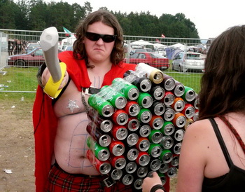 Direkt im Anschluss gab’s auf der Main Stage das Kontrastprogramm: Saltatio Mortis luden mit dem Opener "Prometheus" zu einer Partie lockeren Mittelalter-Rocks, die von Anfang an gut ankam. Neben der bewährten Mischung aus Dudelsack und Gitarre gab’s viel zum mitsingen und klatschen, vor allem vom neuesten Album "Aus der Asche" (2007). Beim sechsten Lied holte sich Sänger Alea, der Bescheidene, zusätzlich noch Unterstützung von einem Menschlein, das ich zunächst für ein Mädchen hielt, sich später aber als Junge entpuppte und akustisch leider kaum rüberkam. Egal. Dem Volke gefiel’s bestens, besonders die Crowdsurfer im Stringtanga, welche dem geflügelten Wort vom "nackten Arsch ins Gesicht" eine völlig neue Bedeutung verliehen. Gingen die Mannen einmal von dannen, konnten sie das unbekümmert tun – sie hatten trotz düsteren Wetters einiges zur guten Stimmung beigetragen.