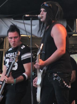 Es hatte gerade 12 geschlagen, als eine auf den Namen Deadstar Assembly hörende Gruppe bunter Psychos US-amerikanischer Herkunft die Bühne enterte, um die noch überschaubaren Zuhörer davor mit einer engängigen Industrial-/Gothmetalmischung aus dem hitzebedingten Delirium zu erwecken. Die Truppe hatte sichtlich Freude an ihrer ersten Show ever auf europäischem Boden, Fronter Dearborn war kaum in den Fokus der Kamera zu bekommen und der Keyboarder flippte schier aus, als sein Instrument ihm den Dienst versagte (anfangs hatte er wohl vorgehabt, das Ding einfach in den Bühnengraben zu pfeffern, entwickelte dann aber mit der Zeit aus der Not eine Tugend bzw. originelles Stageacting...irgendwann lief das Tei dann wieder und überlagerte kurze Zeit den Gesamtsound recht penetrant, worauf sich der Tastenmann wie ein elektrisiertes Schnitzel zu freuen begann. Für die Band ging die Spielzeit offensichtlich etwas zu schnell rum, und so mussten sich das Drugstar Assembly, das eben noch zum etzten Song ansetzen wollte, der strafend dreinblickenden Bühnenuhr geschlagen geben und etwas kurzfristig abziehen. :::Olli
