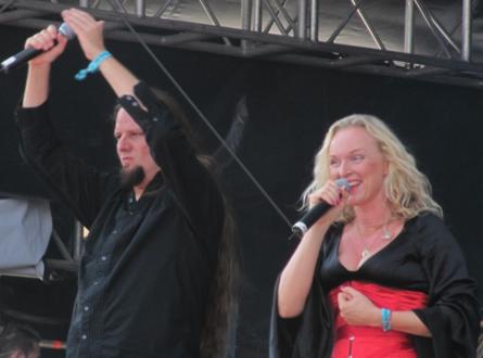Zum Auftritt von Leave's Eyes war die Sonne so weit hinter die Pain Stage gesunken, dass selbige einen angenehmen, langen Schatten auf den Platz davor und die versammelten Metaller warf - wer weiß, für den ein oder anderen mag das der Hauptgrund gewesen sein, sich dort aufzuhalten. Für alle anderen gabs das Ehepaar Krull in stimmlicher Höchstform. Irgendwie erinnerten sowohl Bühnenshow als auch Setlist frappierend dem Auftritt beim Metalfest drei Monate zuvor - wieder wurde versucht, herauszufinden welches Publikum das lauteste sei (waren es zuvor Österreicher und Deutsche, mussten letztere sich diesmal am Tommy messen lassen), und erneut hinterließ "Take the devil in me" bei mir persönlich den besten Eindruck. :::Olli