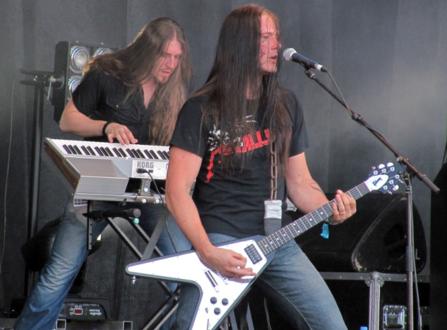 Eröffnet wurde der reguläre Bandreigen von Barren Earth. Ob ihrer Zusammensetzung aus (ehemaligen) Mitgliedern von Amorphis, Moonsorrow und Waltari, mit Swallow the Sun-Fronter Mikko Kotamäki am Mikro kann man die Truppe fast schon als Allstars-Projekt bezeichnen. Dass den Jungs trotz erst eines regulären Studioalbums bereits ein gewisser Ruf vorauszueilen scheint, legte die durchaus ansehnliche Menschenmenge nahe, die sich vor der Main Stage eingefunden hatte. Musikalisch orientieren sich Barren Earth ziemlich offensichtlich an Amorphis - keine schlechte Strategie, wenn man nur allein an deren fulminanten Auftritt an selber Stelle im Vorjahr zurückdenkt -, wobei die Folkelemente ein wenig in den Hintergrund und an deren Stelle vermehrt doomige Elemente, insbesondere eine etwas "gemächlichere" Gangart, zutage treten. Zäh oder gar langweilig war der Auftritt dennoch zu keiner Zeit, auch wenn man aus Zeitgründen auf launige Ansagen verzichtete und sich stattdessen aufs Wesentliche beschränkte. Eingerahmt vom Titeltrack des bisher einzigen Albums, "Curse of the red River" am einen sowie dem letzten Song der zuvor erschienenen EP "Our Twilight" ("Floodred") legten die Finnen einen souveränen Auftritt hin. Die Mischung aus deathlastigen Up-Tempo-Passagen sowie ruhigen, atmosphärischen Parts, die oftmals durch leicht jazzig anmutende Pianoimprovisationen geprägt waren, und einem entsprechenden Wechsel zwischen druckvollen Growls und fragilem Klargesang kam beim Publikum bestens an. Aufgrund von Songlängen meist jenseits der 5 Minuten ließen sich gerade mal 6 Titel in der Spielzeit unterbringen, die zudem aufgrund der Dynamik der dargebotenen Stücke wie im Flug zu vergehen schien. Als nach 35 Minuten der letzte Akkord verhallt war, hatten die Jungs ihre Zuhörerschaft von der Qualität ihres Schaffens rundum überzeugen können und verabschiedeten sich unter gebührendem Applaus von der Stage.
