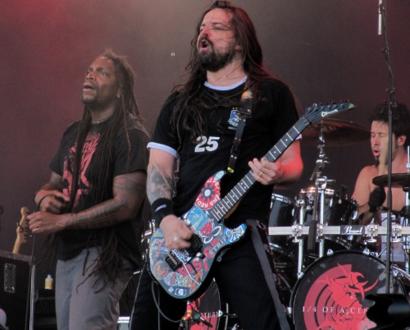 25 Jahre und kein bisschen Müde - der Weggang Max Cavaleras ist längst Geschichte, heute zeigen die Jungs von Sepultura eben mit Derrik Green am Mikro dem Nachwuchs, wo der schwermetallische Hammer hängt. Los gings mit einem Dreierpack vom aktuellen Album A-Lex (A-Lex IV / Moloko Mesto / A-Lex I), bevor man sich den Songs der Cavalera-Ära zuwandte. Fronter Derrick hatte sichtlich Spaß an seinem Breeze-Debüt, und Andreas Kisser an der Gitarre zockte reihenweise perfekte Soli aus dem Ärmel. Merkwürdig: obwohl das Publikum gut mitging, waren so gut wie keine Crowdsurfer unterwegs. Untermalt von den "echten" Klasssikern Rattamahata und dem obligatorischen Roots Bloody Roots ließ es sich dann "wenigstens noch" zu einer ordentlichen Wall of Death hinreißen. War wohl am zum Ende hin alles etwas viel gewesen, aber an Sepultura gabs nicht das Geringste auszusetzen. :::Olli