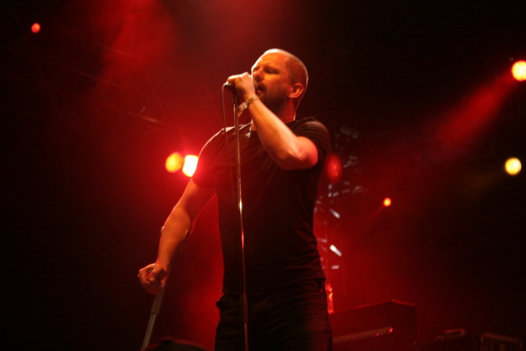 Zum Abschluss geht’s noch einmal ins Zelt: ANAAL NATHRAKH sind seit ein paar Jahren meine Favoriten und heute will ich sie endlich live sehen. Vorher spielen noch die australischen Core-Helden DEEZ NUTS und sorgen dafür, dass das Publikum scheinbar ausschließlich aus jüngeren Leuten mit Caps und Shorts besteht. Nicht wirklich meine Musik, aber die Australier liefern ne geile Show ab, und den Leuten macht’s Spaß. Bei ANAAL NATHRAKH gibt es dann kein Halten mehr: um mich herum nur kreisende Köpfe und in die Luft gereckte Fäuste. Sänger Dave Hunt aka V.I.T.R.I.O.L bewegt sich auf der Bühne trotz Beinverletzung („ich komme mir vor wie ein verdammter Pirat!“) mehr als mancher andere Frontman, und sowohl Klargesang als auch Gekreische kommen perfekt rüber. Als Ausblick aufs neue Album gibt’s einen neuen Song, und zum Abschluss einen Circle Pit zu ‚Pandemonic Hyperblast‘. Danach strahlende Gesichter. Und ein Feuerwerk. Wunderschön.