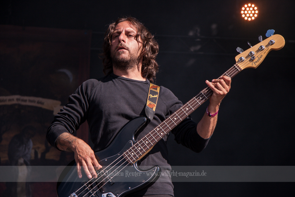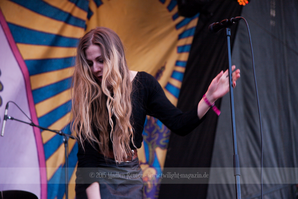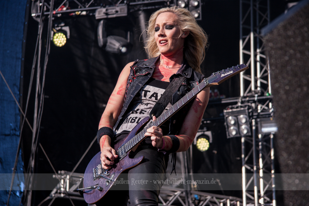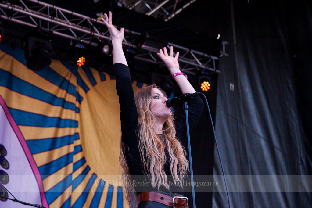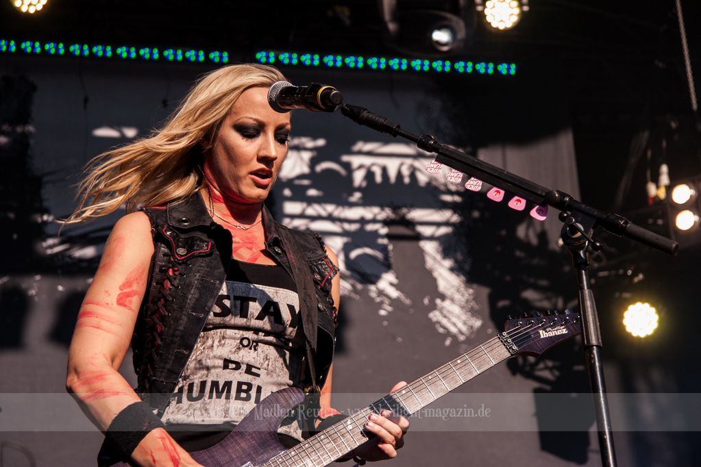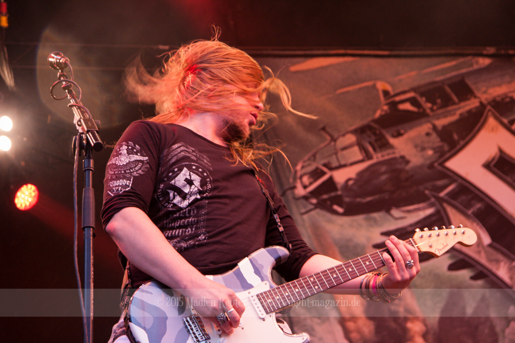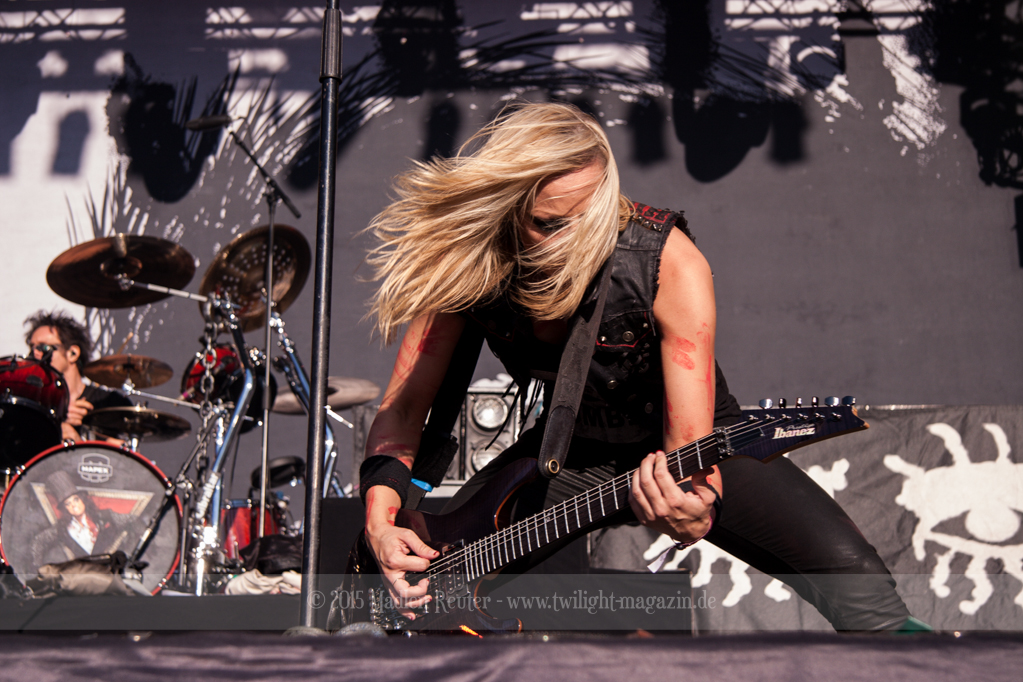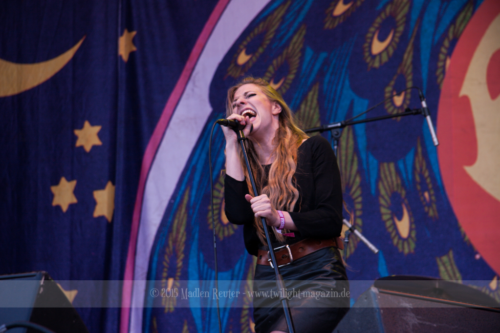 Über die nächste Band musste ich mich dann aber doch wundern. THE BLUES PILLS? Auf einem Metalfestival? Da ich keinerlei Erwartungen an diese Band hatte, wurde ich dennoch positiv überrascht. Zwar war die Musik sehr bluesgeprägt - wie der Name der Band schon verraten könnte - und die Musiker wagten es kaum, ihre Blicke von den Instrumenten zu heben, aber die Sängerin machte dies ein wenig wett. Voller Energie und guter Laune schüttelte sie ihr Tamburin umher, hüpfte über die Bühne und überraschte mit ihrer kräftigen Stimme. Der Auftritt war ziemlich gut, wenn man einmal davon absieht, dass diese Band eigentlich nicht auf dieses Festival passt.