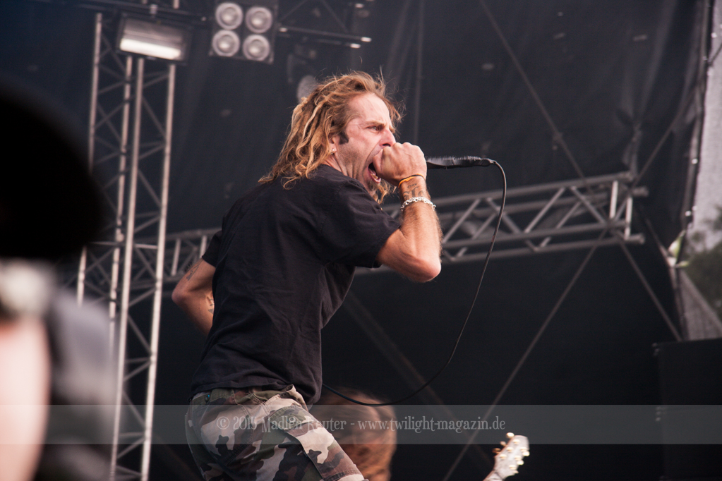 Nach dieser Verschnaufpause ging es mit LAMB OF GOD weiter. Schon vor Beginn kochte die Stimmung fast über. Erwartungsvoll wurde der Auftritt der Amerikaner herbeigesehnt. Schon beim Betreten der Bühne stellten die Jungs klar, dass sie diese Bühne heute auseinandernehmen wollten. Kerniger Sound, harte Shouts und noch derbere Riffs wummerten aus den Boxen, und trugen ihren Teil zur grandiosen Stimmung bei. Für Liebhaber von Moshpits und Wall Of Death’s wäre dieser Auftritt eine wahre Offenbarung gewesen. Kaum jemand bleibt ruhig stehen, denn die Rückkehr der Band wollte angemessen zelebriert werden.