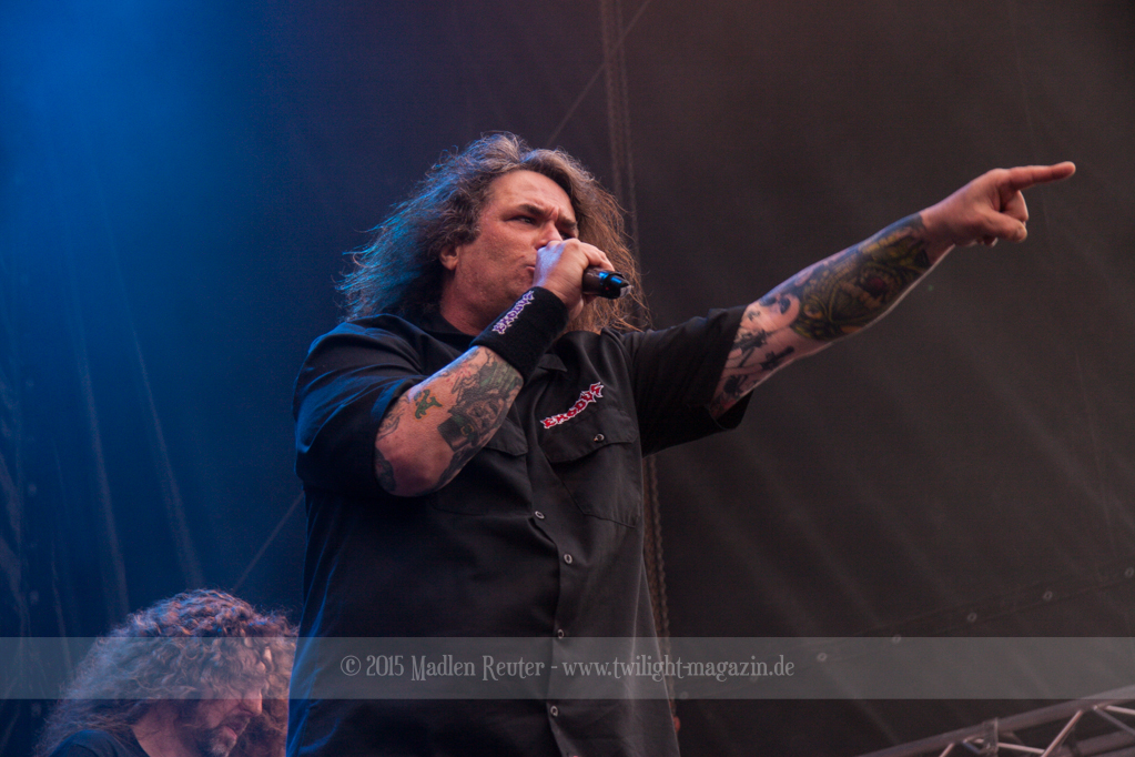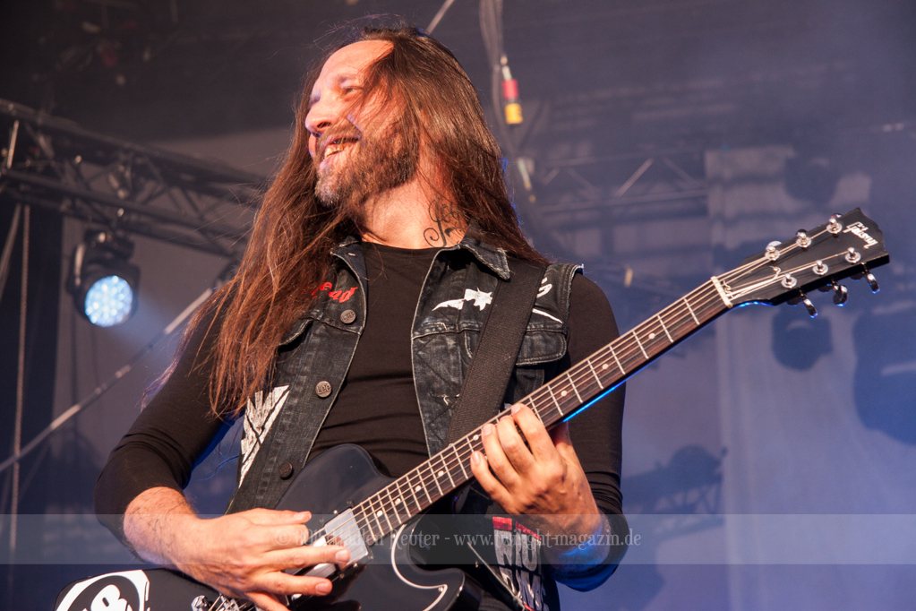 Dann war es auch schon Zeit für das erste Highlight des Tages – EXODUS. Ich muss gestehen, ich konnte sehr lange nichts mit dieser Band anfangen. Seit einem vorangegangenen Konzertbesuch, hat sich meine Meinung allerdings stark geändert. Ein gewaltiges Thrash Metal Feuerwerk, bestehend aus einer angenehmen Mischung von Klassikern und neuen Tracks, wurde für das Publikum abgefeuert. Dabei blieb kaum jemand ruhig stehen und der Zuschauerraum verwandelte sich bald in einen wahren Hexenkessel. Der extrem fette Sound unterstrich die Größe dieses Auftritts noch. Aber auch lobend sei der Einsatz von Nebel und Licht erwähnt – Da wurde nicht nur dem Ohr eine Freude geboten.