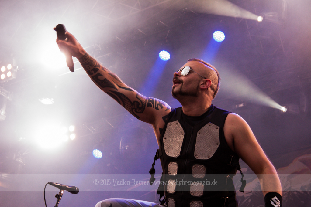 Zeit für den Headliner dieses Tages. Diese Ehre wurde den Schweden von SABATON zuteil. Bei dieser Show sollte der neue Panzer, der den wundervollen Namen „Walther“ trägt, seine Bühnenpremiere feiern. Der Andrang vor der Bühne war gewaltig, und die Luft knisterte vor Spannung. Wie man es nicht anders kennt, bot die Band eine energiegeladene Show sondergleichen. Vor allem Basser Pär und Sänger Joákim, flogen regelrecht über die Bühne. Da sich im Repertoire der Band wohl ein Song zur Geschichte jeden Landes befindet, gestaltete sich die Setlist dementsprechend. Aus diesem Grund fand „Talvisota“ großen Anklang bei den Finnen. Auch forderten sie „Gott Mit Uns“ in Schwedisch zu hören. Diesem Wunsch kam die Band mit großer Freude nach. Neben guter Musik boten die Fünf auch ein breites Sortiment an Feuerwerk und Flammenwerfern. So wurde dem Publikum gleich doppelt eingeheizt. Trotz anfänglicher Probleme mit dem Mikrofon wandelte der Auftritt sich zu einem würdigen Tagesabschluss.