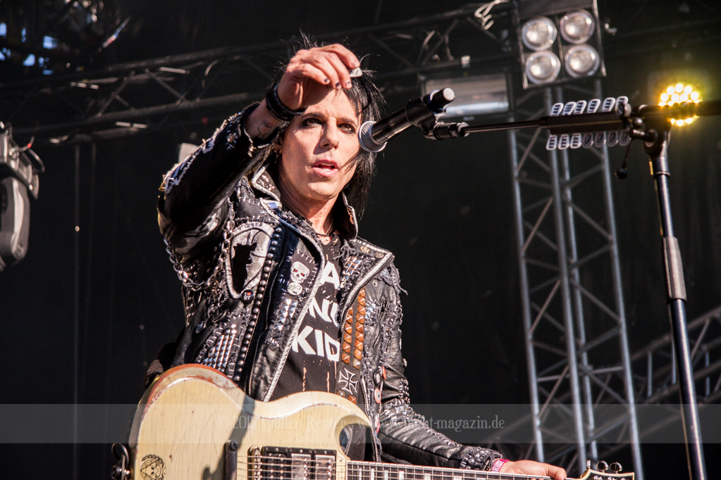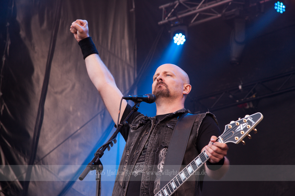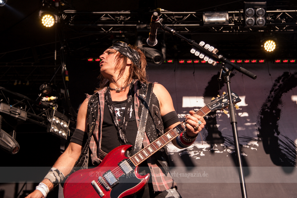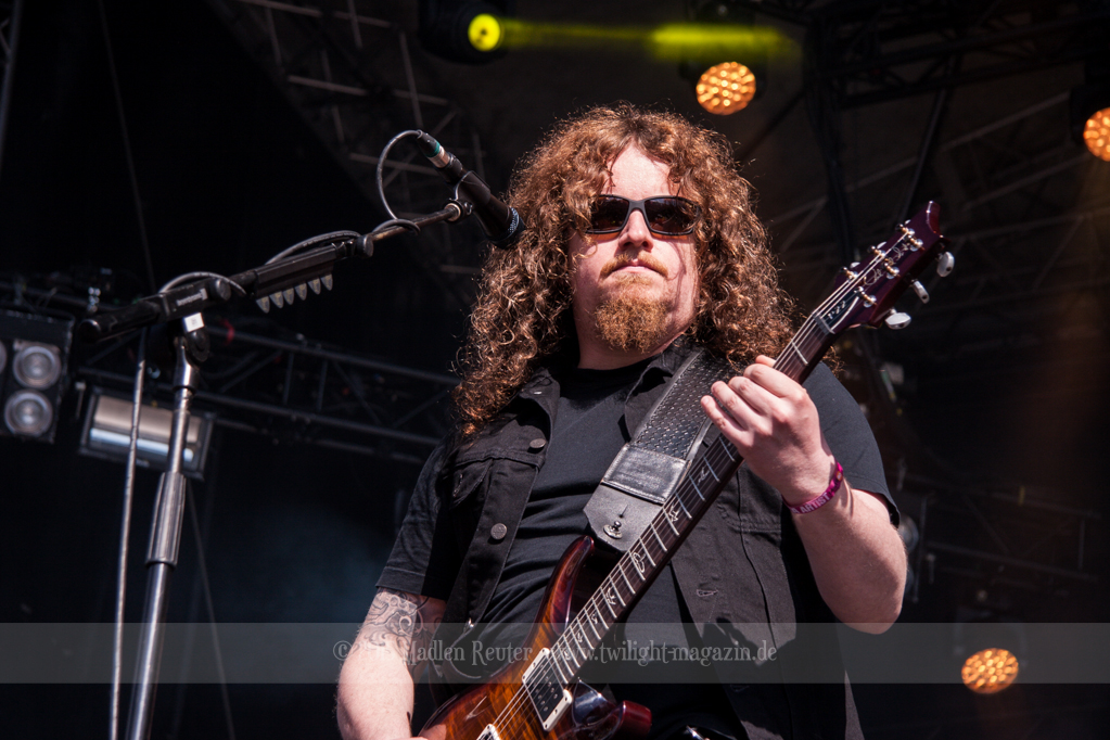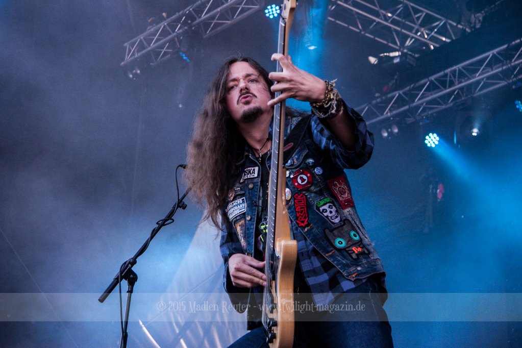 Den, aus dem Land der aufgehenden Sonne stammenden, Herren von LOUDNESS wurde als nächstes die Bühne überlassen. Unschwer zu Überhören war, dass die Band sich auf Hardrock aus den 80ern spezialisiert hatte. Einen gewissen Touch AC/DC und ACCEPT ließ sich nicht von leugnen. Vor allem der Gitarrist durfte, mit zahlreichen, Technisch höchst anspruchsvollen Solos, sein Können unter Beweis stellen. Irgendwie hatte ich das Gefühl, dass sie denselben Song einfach immer wieder gespielt haben.