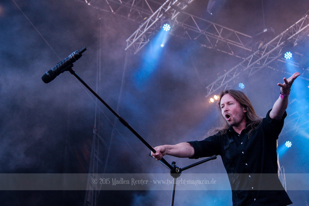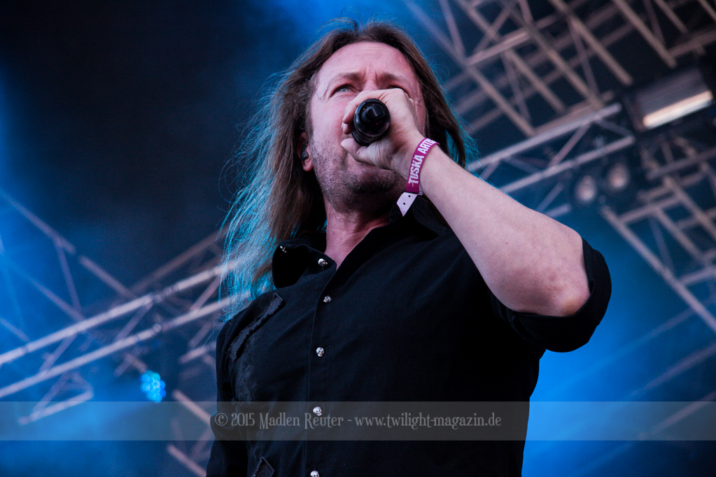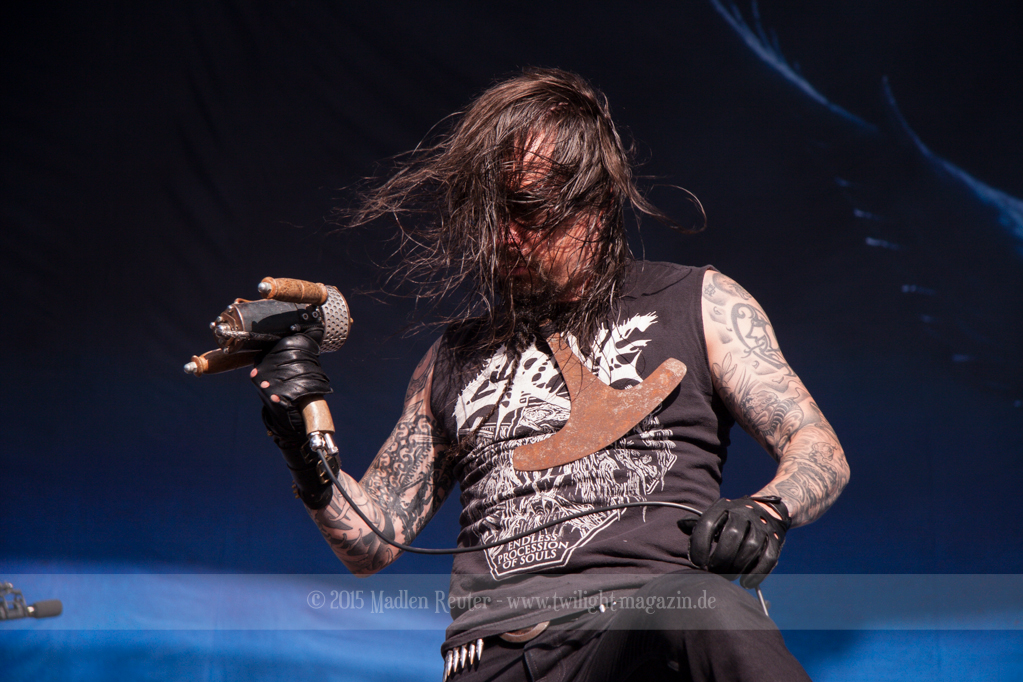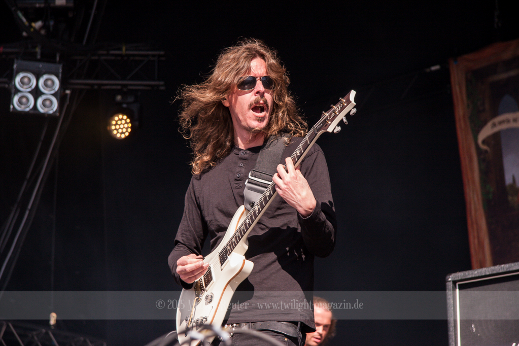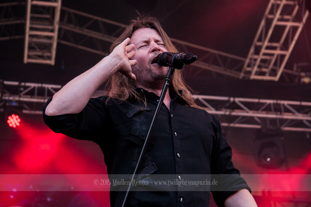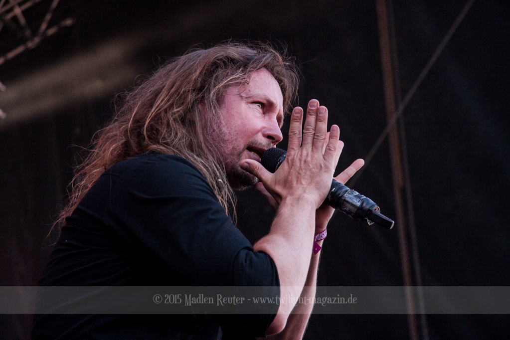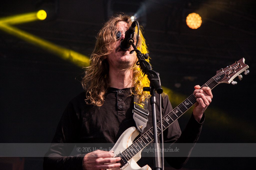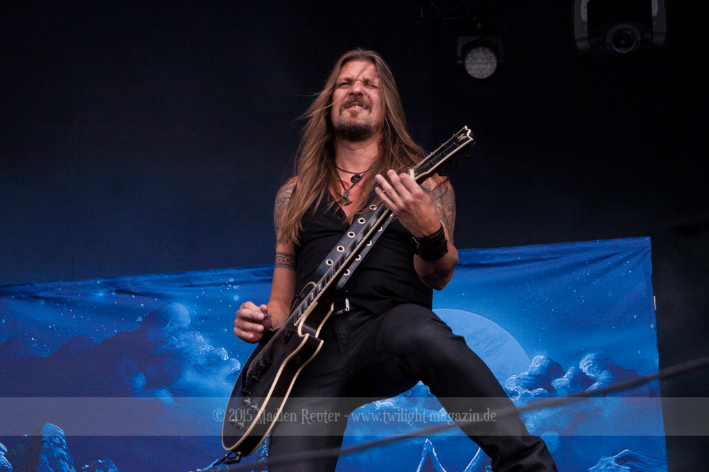 Mein persönlicher Höhepunkt des Tages waren AMORPHIS. Schon seit Jahren wollte ich die Finnen live sehen, und nun war es endlich soweit. Da es sich hierbei um eine spezielle Show gehandelt hat, welche das Kultalbum „Tales From The Thousand Lakes“ feiert sollte, wurde das Album in seiner Gänze dargeboten. Neben diesen Tracks durften aber auch weitere Klassiker nicht fehlen. Zusätzlich wurde auch eine faszinierende Feuershow abgefeuert. Der Sound war extrem fett, und vor allem Sänger Tomi stellte eine unglaubliche Bühnenpräsenz dar. Wie eine solch derbe Stimme aus diesem Mann kommen kann, ist mir bis heute ein Rätsel – Dafür umso faszinierender. Das Gesamtpaket hat einfach gepasst und hat mir eins versichert: Dies war definitiv nicht meine letze AMORPHIS Show!