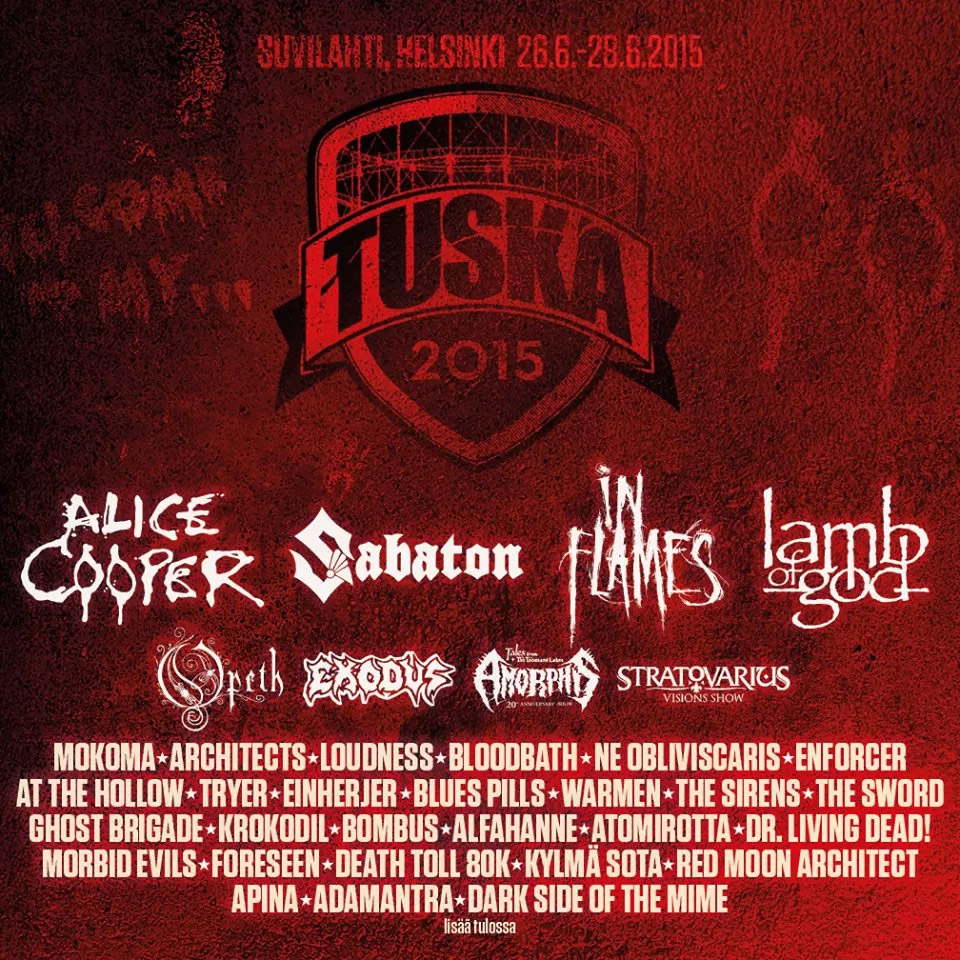 Alice Cooper, Sabaton, In Flames, Lamb Of God, Opeth, Exodus, Abbath, Amorphis, Stratovarius, Mokoma, Architects, Loudness, Bloodbath, Ne Obliviscaris, Enforcer, At The Hollow, Tryer, Einherjer, Blues Pills, Warmen, The Sirens, Ghost Brigade, Krokodil, Bombus, Sotajumala, Alfahanne, Atomirotta, Dr. Living Dead!, Morbid Evils, Foreseen, Death Toll 80K, Kylmä sota, Red Moon Architect, Apina, Adamantra, Mors Subita, Shiraz Lane, Spawn From Deceit, Mortus, Crepuscular, Eternal Dusk, Grey, Yvaeh, Blast, Mystic Triangle, Metal, Dark Side Of The Mime, Manala comedy presents: Robert Petterson
