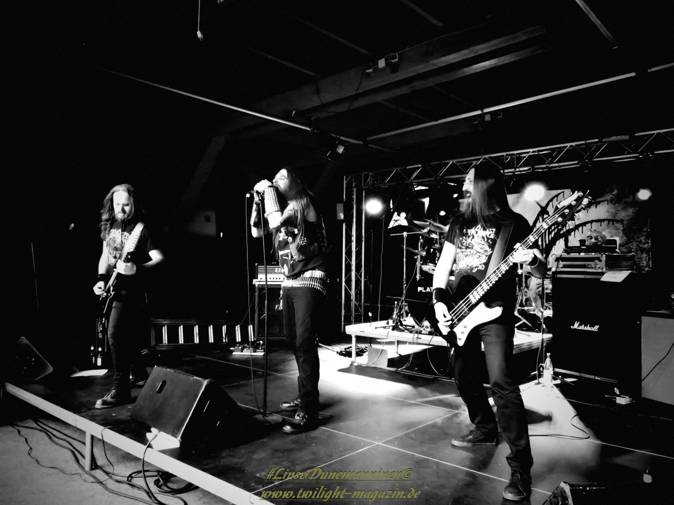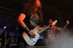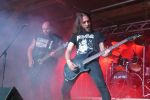 Auf die Detmolder Death Metaller von EVOKED hatte ich mich neben den schwedischen Night Viper, die ihren Auftritt leider vor einigen Wochen gecancelt hatten, am meisten gefreut. Das auf Konserve absolut überzeugende, räudige und rohe, an die urschwedische Schule angelehnte Brett bleibt zumindest am heutigen Nachmittag etwas blass und eintönig, obwohl das Trio eine mehr als solide Show abliefert. So wirkt es dann auch etwas skuril, als man schon nach einer halben Stunde die Bühne verlässt und sich danach trotz mäßiger Publikumsreaktionen wider Erwarten selbst eine Zugabe gönnt. Aber auch wenn das Feuerwerk heute nicht so recht zünden will, muss man die FDA-Jungs in Zukunft definitiv auf dem Zettel haben.