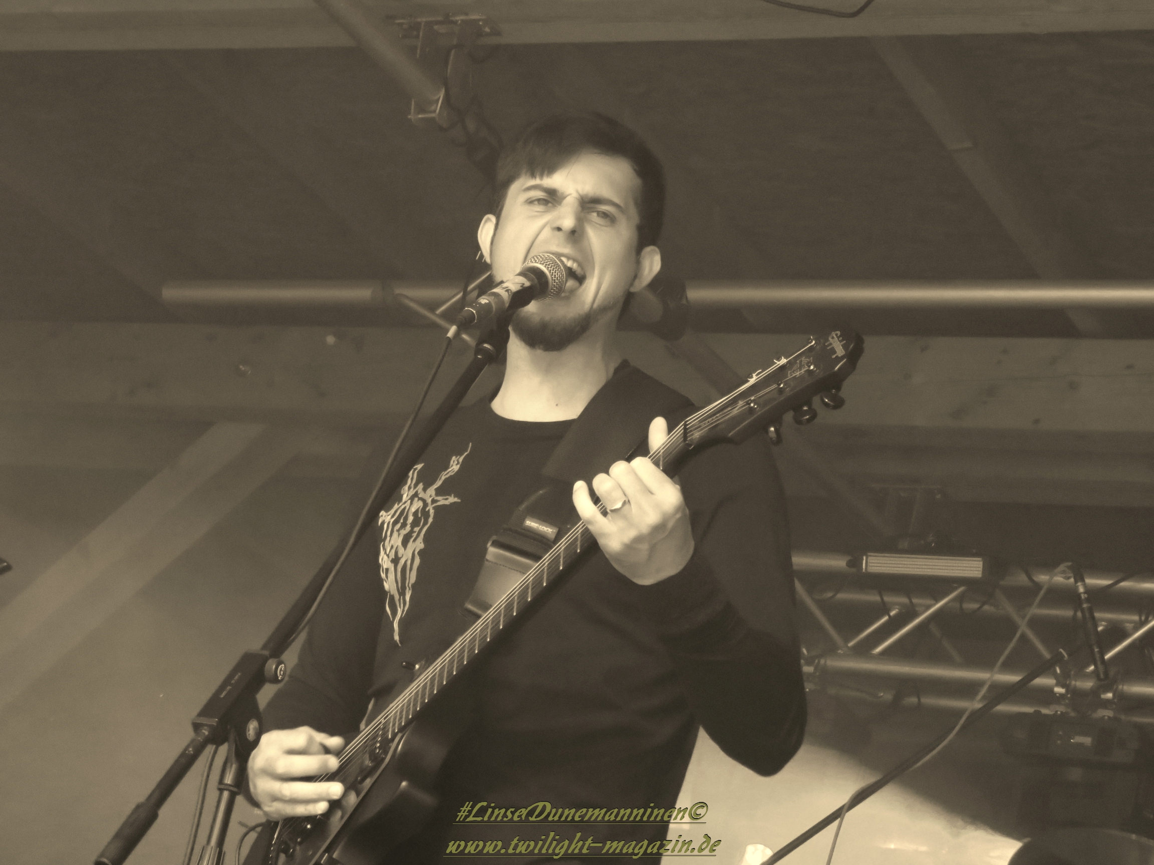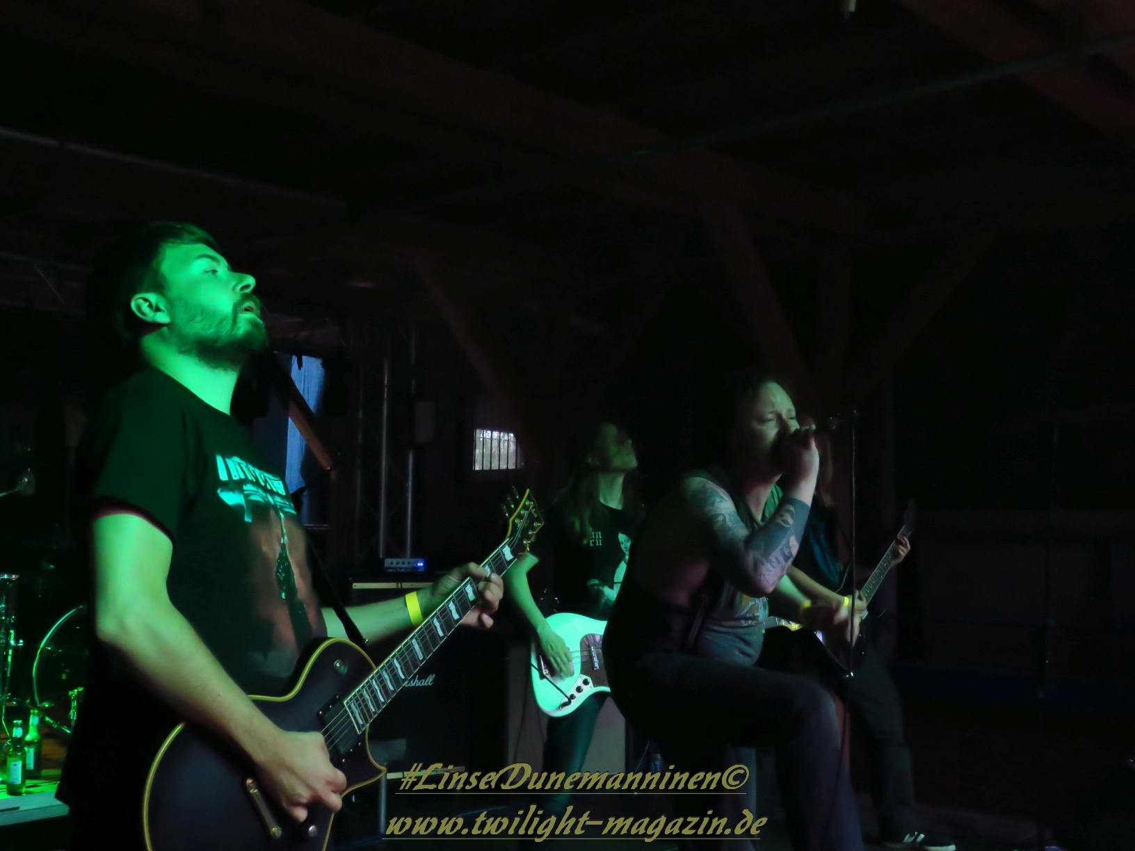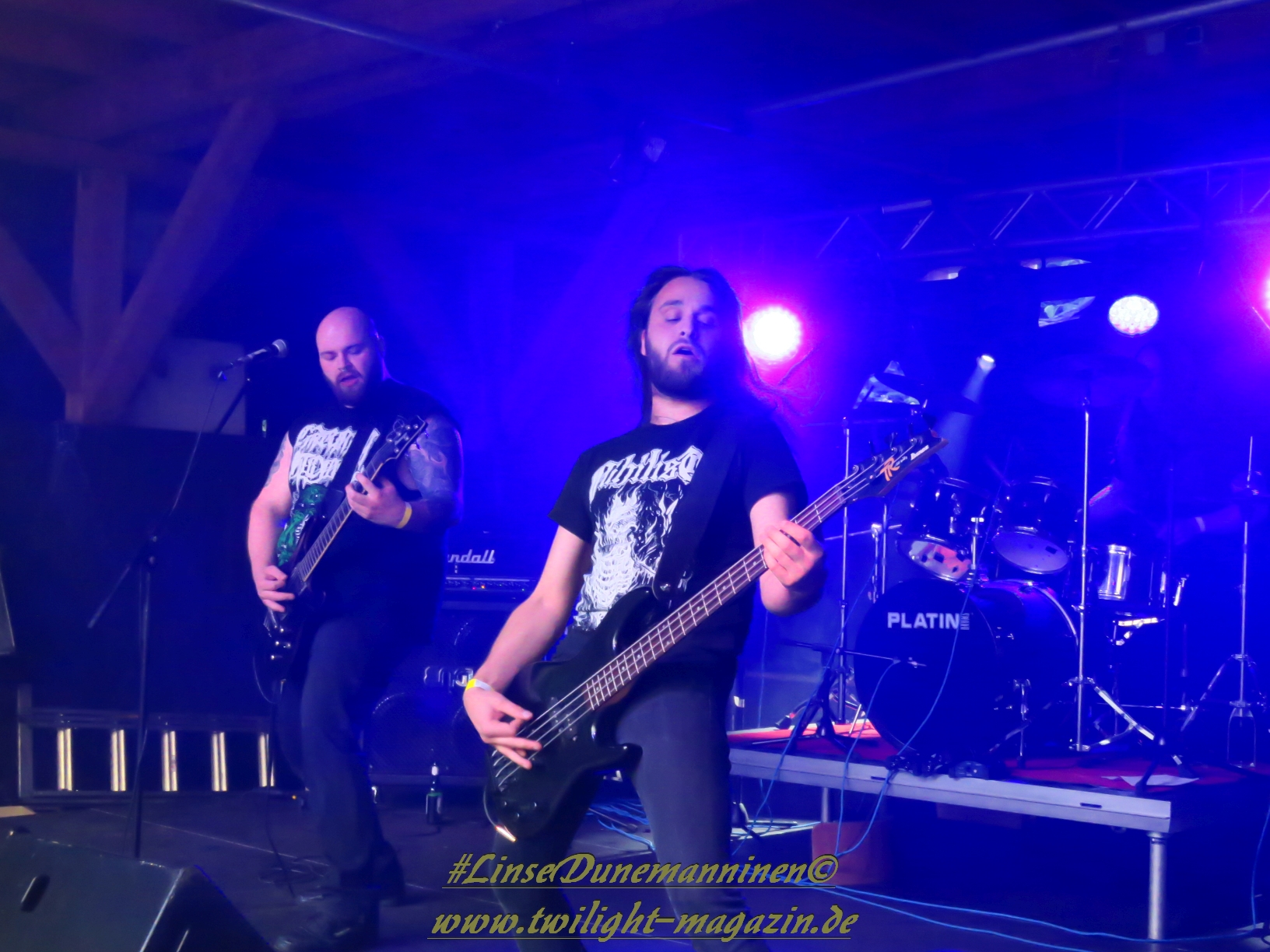 Danach ist es Zeit für das Finale. Nach einer kurzen Verzögerung aufgrund von technischer Probleme richtet ein abgekämpftes aber überaus zufrieden und glücklich dreinblickendes Orga-Team Dank an Bands, Crew und an die sehr zahlreich erschienenen Gäste, ehe IMPERIUM DEKADENZ dem Underground Remains Open Air 2017 mit viel schwarzmetallischer Atmosphäre den Todesstoß versetzen dürfen. Das Quintett aus dem Schwarzwald und Franken weiß die Gunst der hereingebrochenen Dunkelheit perfekt zu nutzen und lässt alle Anwesenden in ihren düsteren Kompositionen schwelgen, wobei die Performance äußerst stark ist. Und so klingt das Festival in einer lauen Frühsommer-Nacht würdig aus. Erwähnt werden muss an dieser Stelle auch die Tontechnik-Mannschaft, die dem Publikum bei jeder Band einen guten bis sehr guten Sound gebastelt hat, was bei Veranstaltungen dieser Art, unabhängig von der Größe, leider nicht immer Standard ist.