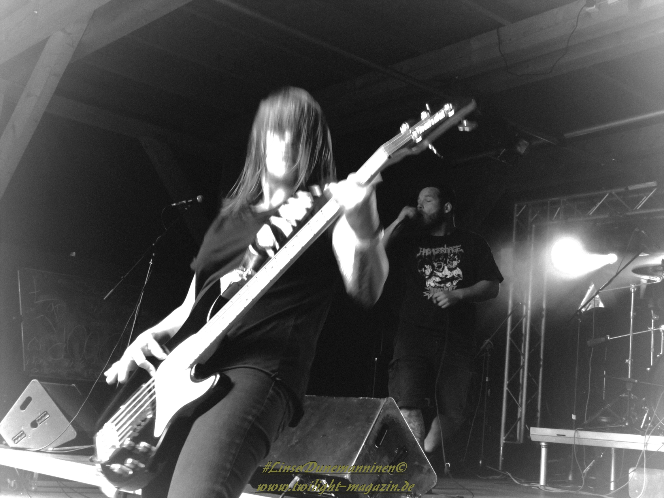 Die musikalische Mischung aus Black Metal, Punk und Doom von Seuche und seiner Band Fäulnis ist schon sehr speziell und zum Polarisieren verdammt. Insbesondere vom hatte ich die Hamburger Formation auf dem Party.San 2015 persönlich in fürchterlicher Erinnerung. Dieser Eindruck relativiert sich heute Abend glücklicherweise etwas, wobei ich mit der Musik und der Art, wie sie Hauptprotagonist Seuche vorträgt jedoch nach wie vor nicht wirklich warm werde. Als Performance-Kunst kann ich dem ganzen jedoch zumindest einmalig etwas abgewinnen. Darüber hinaus sieht das aber ein großer Teil des Publikums anders und feiert Fäulnis mächtig ab.