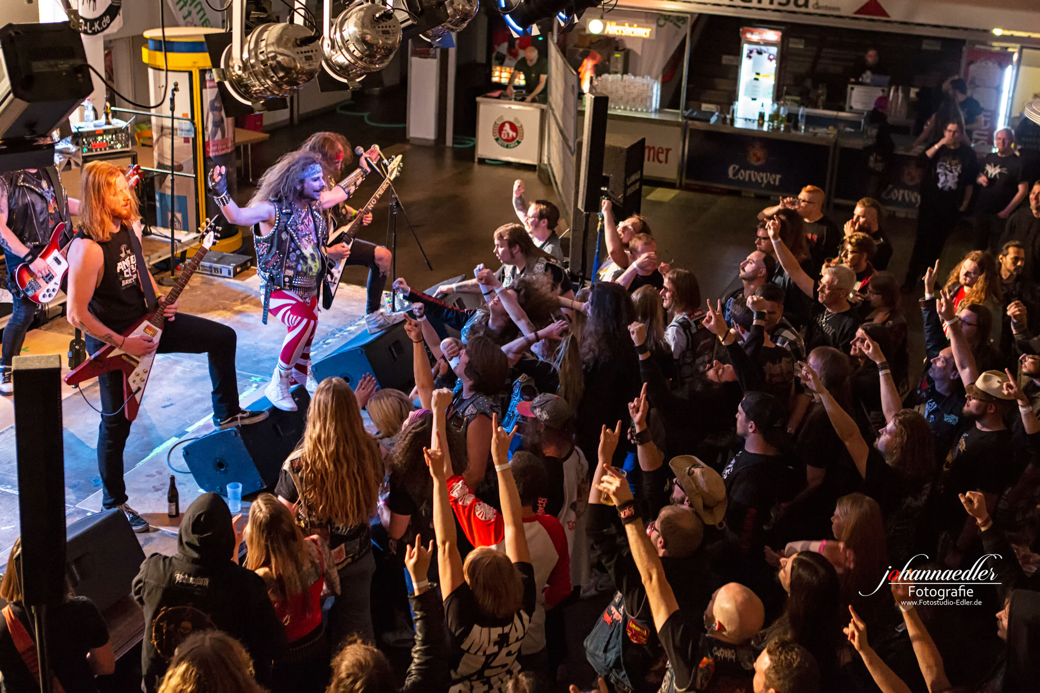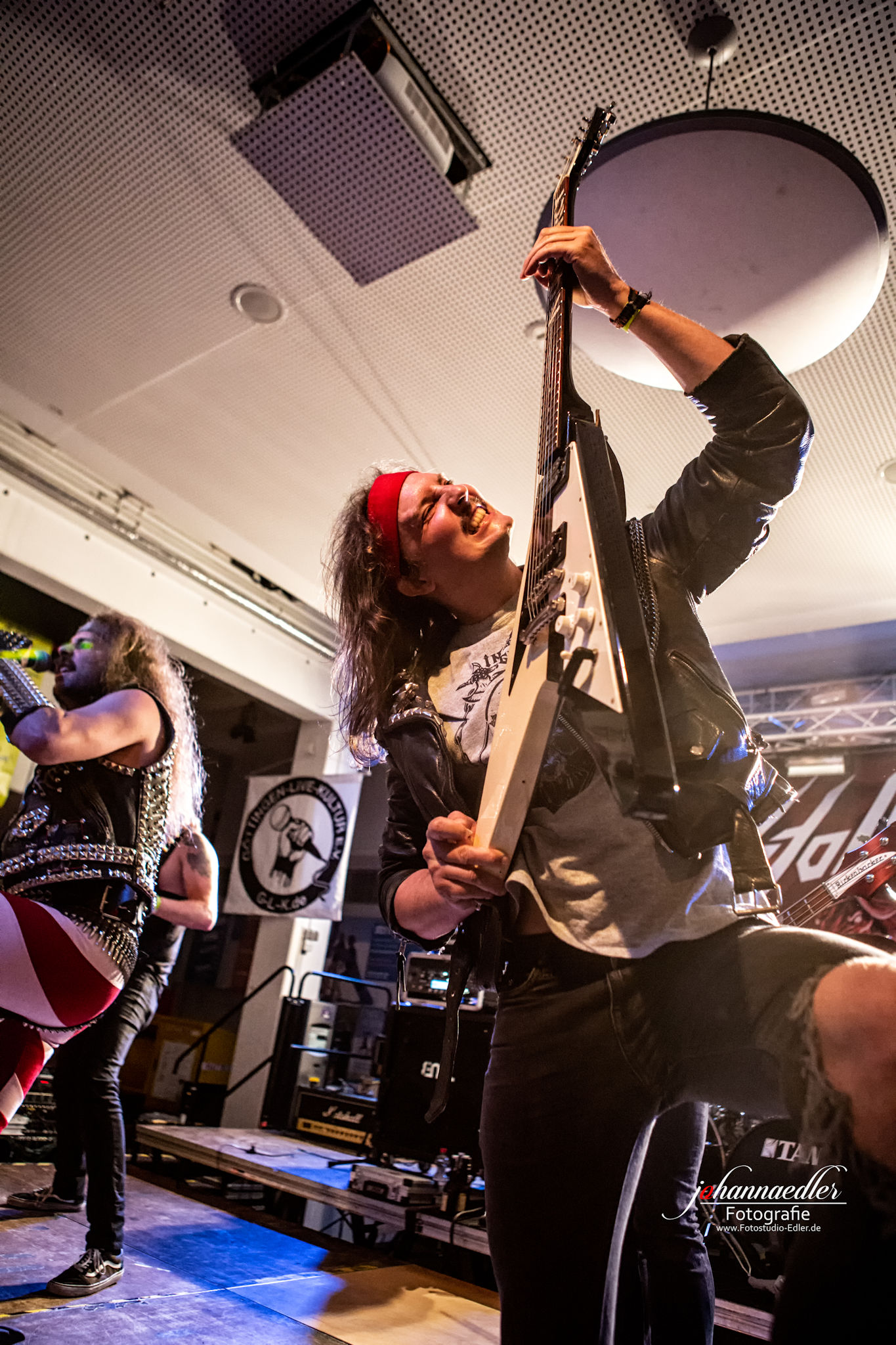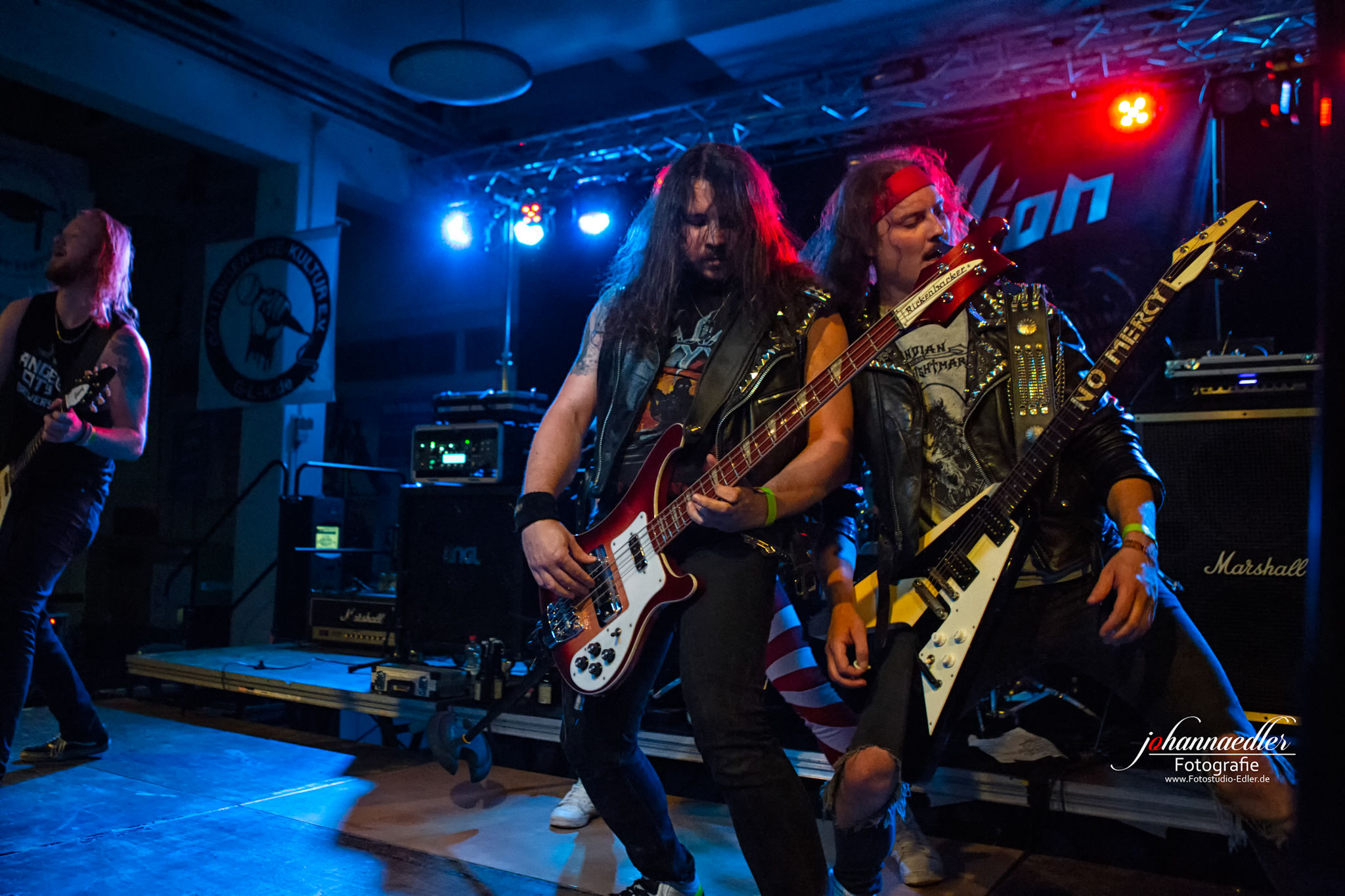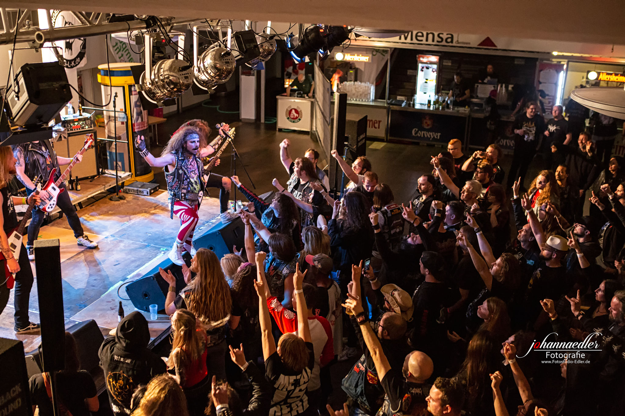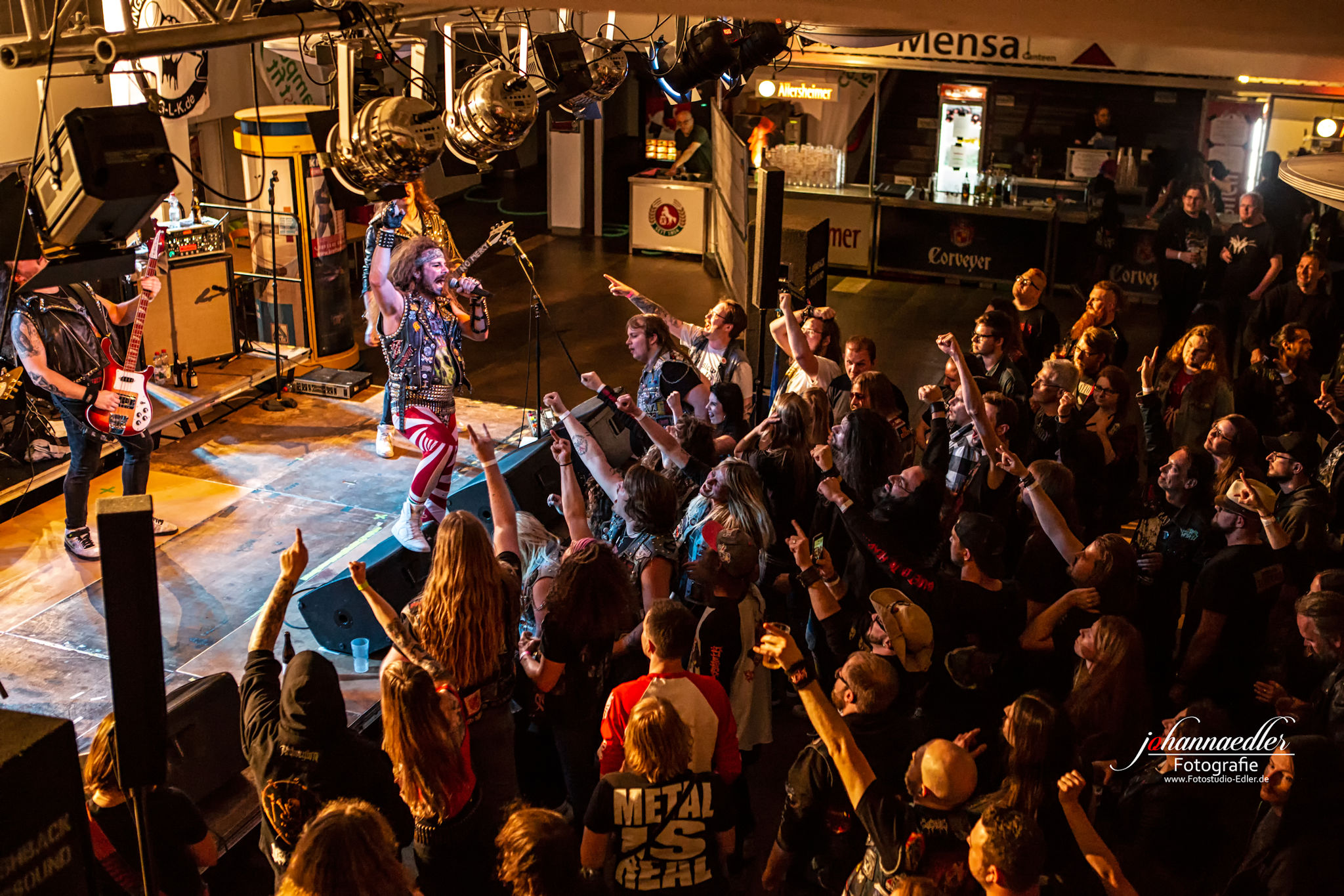 Zitate und musikalische Verbeugungen gibt es anschließend auch bei STALLION zuhauf. Die Uhr ist bereits weit vorgerückt und so begrüßen die Jungs aus Baden-Württemberg die versprengte und bereits deutlich dezimierte Meute vor der Bühne mit einem ausgelassenen "Guten Morgen, Göttingen!". Sowohl Stallion, als auch Fans haben tierischen Bock, die Mensa final zu rocken. Das, was hier von der Bühne auf die partywütigen Metalheads einprasselt ist eine Huldigung der Hochphase des Heavy- Speed- und Thrash Metals vornehmlich deutscher Prägung. Stallion spielen sich den Arsch ab und wissen von der ersten, bis zur letzten Minute zu begeistern. Die Einflüsse des Quintetts mögen zwar in den Achtzigern liegen, aber was diese Jungs daraus machen klingt nicht nur live frisch und kraftvoll, das ist zeitloser Metal aus dem Hier und Jetzt. Ein absolut würdiger Headliner und Abschluss des UNDERGROUND REMAINS OPEN AIR 2019.