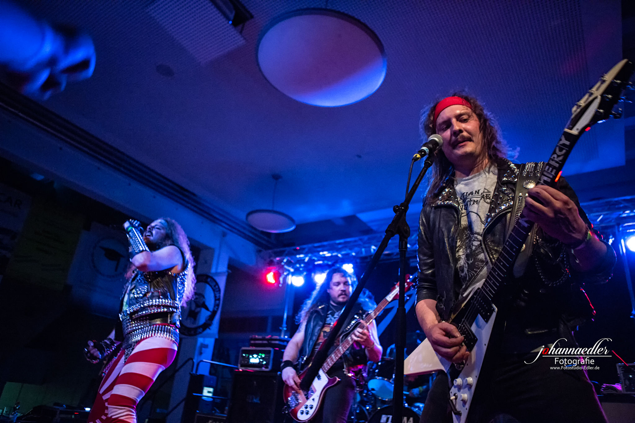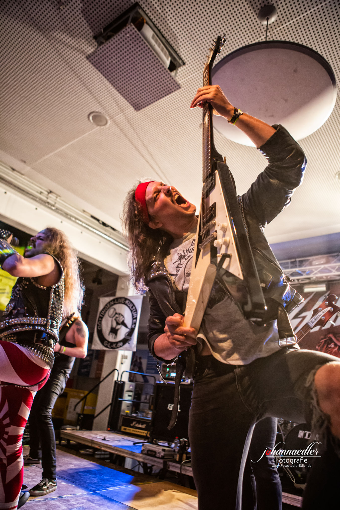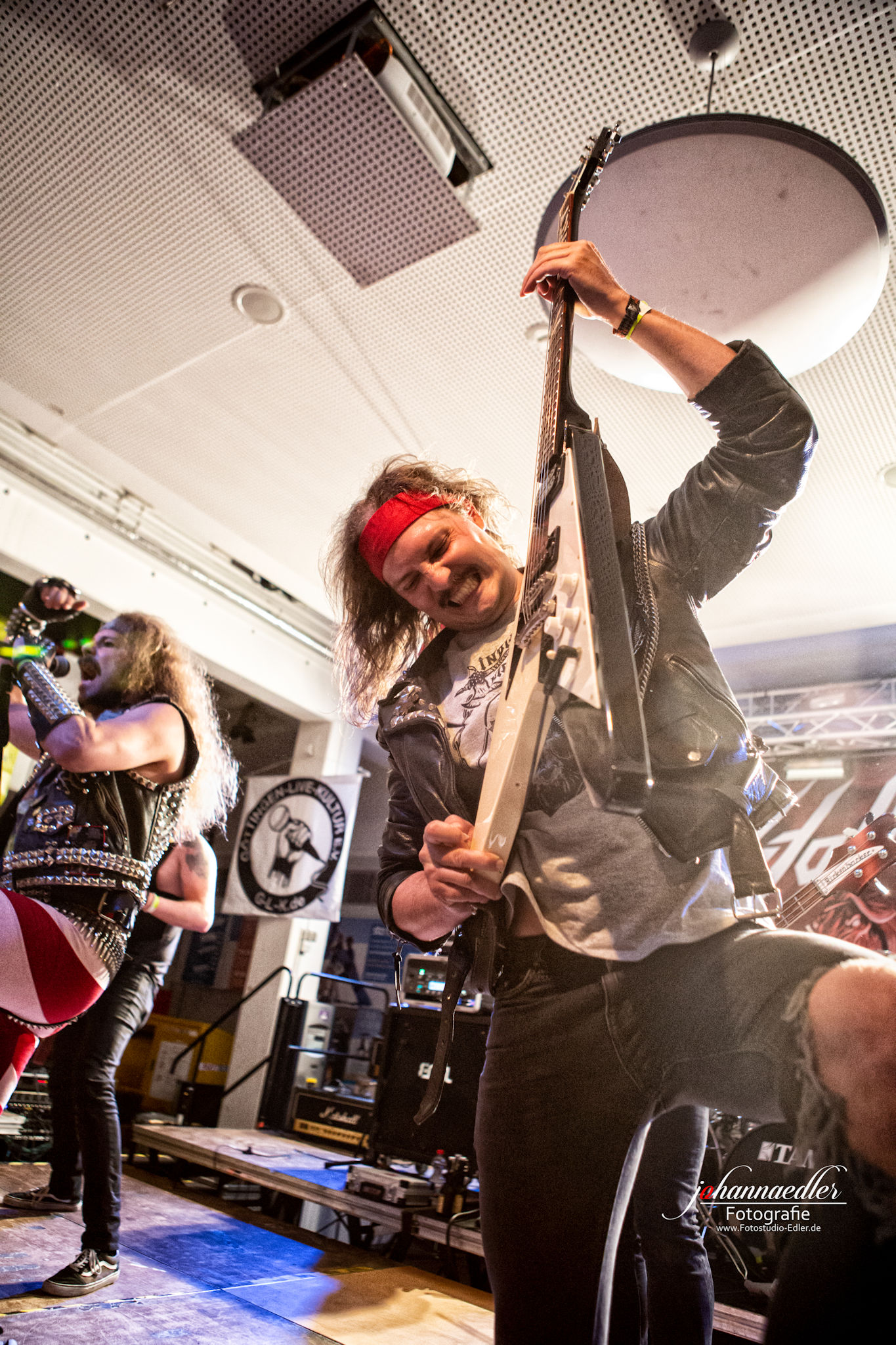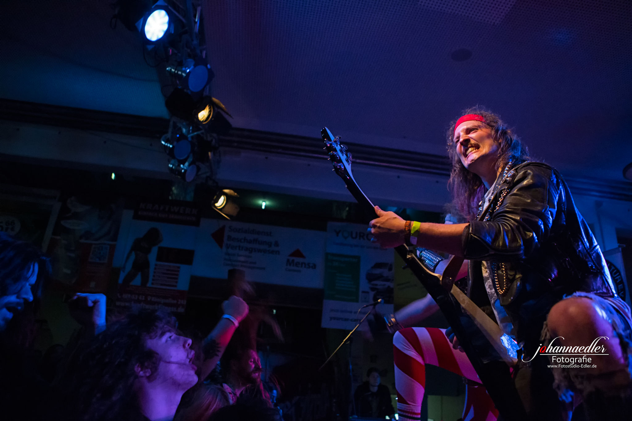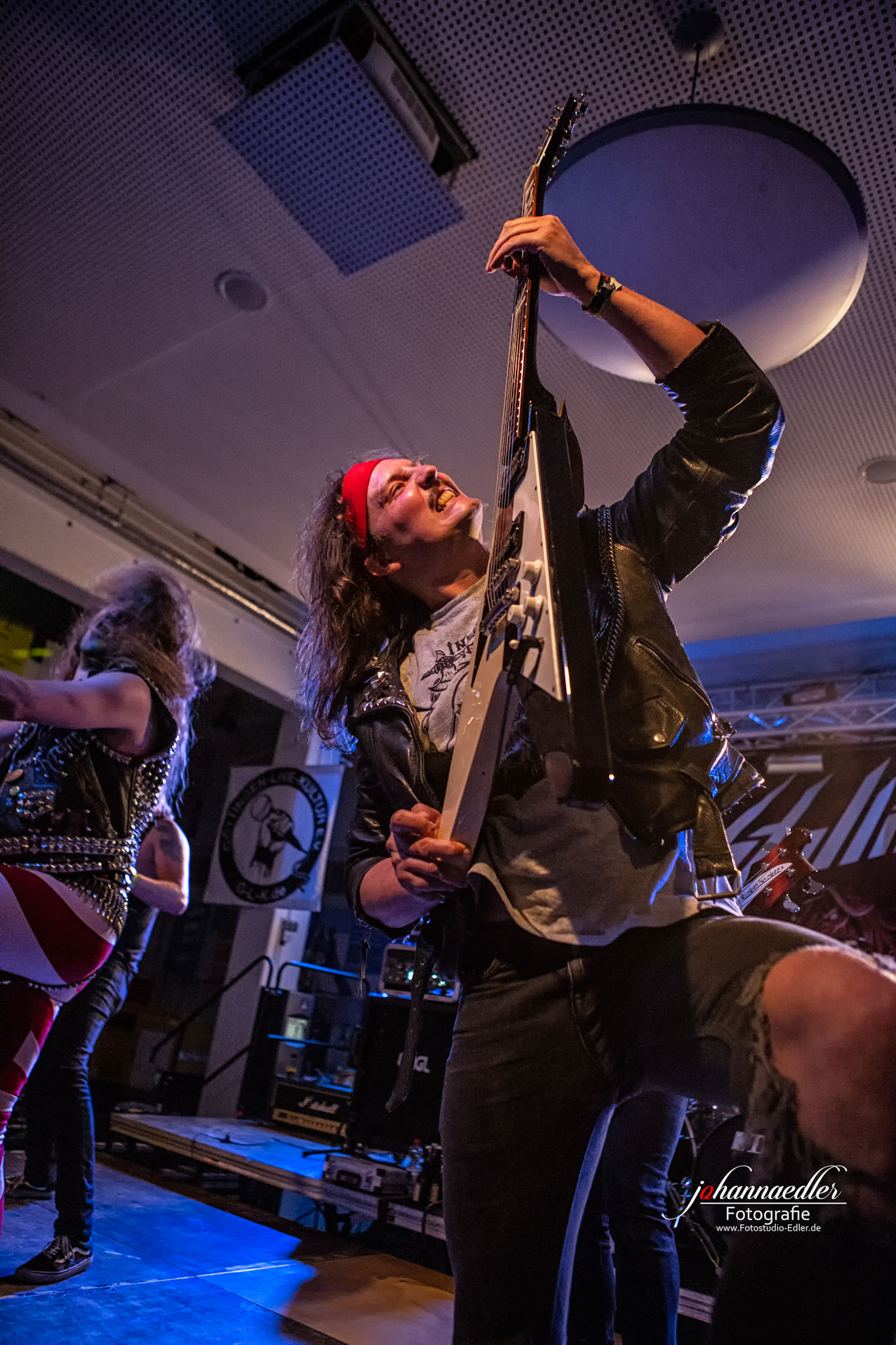 Zitate und musikalische Verbeugungen gibt es anschließend auch bei STALLION zuhauf. Die Uhr ist bereits weit vorgerückt und so begrüßen die Jungs aus Baden-Württemberg die versprengte und bereits deutlich dezimierte Meute vor der Bühne mit einem ausgelassenen "Guten Morgen, Göttingen!". Sowohl Stallion, als auch Fans haben tierischen Bock, die Mensa final zu rocken. Das, was hier von der Bühne auf die partywütigen Metalheads einprasselt ist eine Huldigung der Hochphase des Heavy- Speed- und Thrash Metals vornehmlich deutscher Prägung. Stallion spielen sich den Arsch ab und wissen von der ersten, bis zur letzten Minute zu begeistern. Die Einflüsse des Quintetts mögen zwar in den Achtzigern liegen, aber was diese Jungs daraus machen klingt nicht nur live frisch und kraftvoll, das ist zeitloser Metal aus dem Hier und Jetzt. Ein absolut würdiger Headliner und Abschluss des UNDERGROUND REMAINS OPEN AIR 2019.