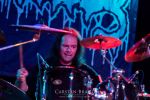 Im Publikum ist es zwar schon etwas ausgedünnt, als LIFELESS anschließend die Bühne entern, der Stimmung tut dies aber längst keinen Abbruch. Das Quartett aus dem FDA-Stall ist auch so eine Combo, die ich bisher nicht auf auf meiner Liste hatte. Was hier geboten wird ist bester HM2-Sound mit massiven Riffwänden, morbiden und verstörenden Melodie- und Gitarrenlead-Abgründen in bester "Left Hand Path"-Manier samt einem fetten Rythmusgewitter und einem Sänger, der alles Übel der Welt aus seinen Lungen brüllt und schreit. Und doch bleibt zwischendurch noch Zeit für gute Laune mit der Marc Niederhagemann sein Publikum durch einen äußerst kurzweiligen Set führt. Im Vergleich zu Krisiun ist das natürlich alles andere als innovativ und technisch weitaus weniger versiert aber dafür reißen Lifeless mit und machen Spaß. Zwar sind Dismember- und Entombed-Zitate unüberhörbar, die Band scheint jedoch mindestens genauso viele Einflüsse aus den Werken der wesentlich düsteren Schwedenkollegen von Necrophobic oder Dissection zu ziehen. Mit diesem Gebräu aus den Elchlanden gelingt es Lifeless jedoch über weite Strecken eine ziemlich eigene Todesmetall-Atmosphäre zu kreieren, die sie deutlich von anderen Formationen des Genres abhebt. Die großartige Coverversion von "Casket Garden" nimmt man gern mit aber die Dortmunder haben auch ohne dieses musikalische Sahnehäubchen mindestens einen Fan mehr.