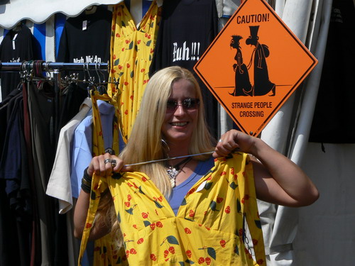 Ich war ja wenigstens schon halbwegs vorbereitet, da mir Katrin im Vorfeld bereits untersagt hatte, bestimmte Kleidungsstücke mitzuführen wenn ich in ihrem Zelt untergebracht werden wolle. Beach hingegen wurde mehr als skeptisch beäugt, als er wie selbstverständlich mit seiner ausgewaschenen und ausgebeulten grauen kurzen Jogginghose (die auf unserem Zeltvorplatz gerade noch geduldet wurde) das Festivalgelände betreten wollte - aus Sicht der Damen völlig unakzeptabel. Von Peter brauchen wir nicht zu reden, hatte er doch in seinem Reisegepäck außer für die Klamotten, die er am Leib trug, im Wesentlichen lediglich für zwei Paletten Dosenbier Platz gefunden.