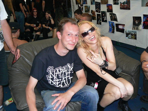 Samstag 13:55-14:40 ARCH ENEMY Dass Frauen verdammt gut meckern können, weiß sicher so ziemlich jeder Mann. Dass Frauen nun aber auch noch gut brüllen und growlen können und das sogar im musikalischen Gewand, dürfte nun mittlerweile jeder vernommen haben, der beim Arch Enemy Gig am Samstagmorgen dabei war. Mein lieber Schwan, wen hat die wohl zum Frühstück verspeist? dürfte sich der Eine oder Andere gefragt haben, als er Angela Gossow "we will rise" oder " nemesis" brüllen hörte. Zudem hat die Schöne wirklich noch eine gute Figur hingelegt. Grosses Kino mit hervorragenden Musikern. Allerdings ließ der Sound zu Wünschen übrig und die Sonne knallte zu früher Stunde schon viel zu heftig, was einige veranlasste trotz guter Musik schnell das Weite zu suchen. Dennoch für viele sicherlich einer der Höhepunkte des Festivals. Daniel
