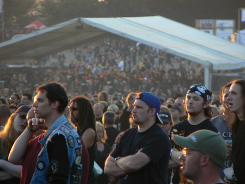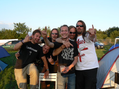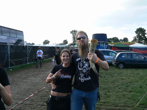 Freitag 02:00-03:00 AMON AMARTH Nachts um 02.00 Uhr schließlich sind die Headliner für Freitag an der Reihe - AMON AMARTH. Was soll ich sagen... der Sound konnte nicht so recht überzeugen, bei mir kam immer nur verschwommenes (leises) Gewummer an. Die Wikingershow war zwar nett anzusehen, mein Fall war es allerdings nicht, da ich nicht so sehr auf Hollywood und funkensprühende Schwertkämpfe stehen (wobei man den Jomswikingern sicherlich ein gewisses Talent für Theater nicht absprechen kann). Größtes Manko war jedenfalls das Fehlen meines Lieblingssongs "Thousand Years Of Oppression", das mag aber eine persönliche Impression sein. Nach der Show verlassen die Schweden die Bühne auch recht schnell und konnten wegen fehlendem Druck - zumindest mich - nicht recht überzeugen. Lennart