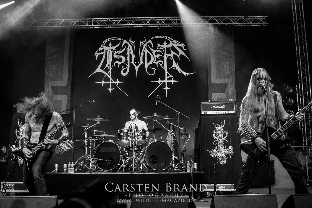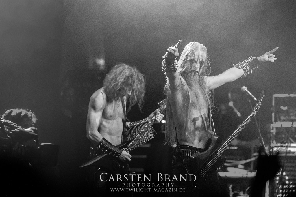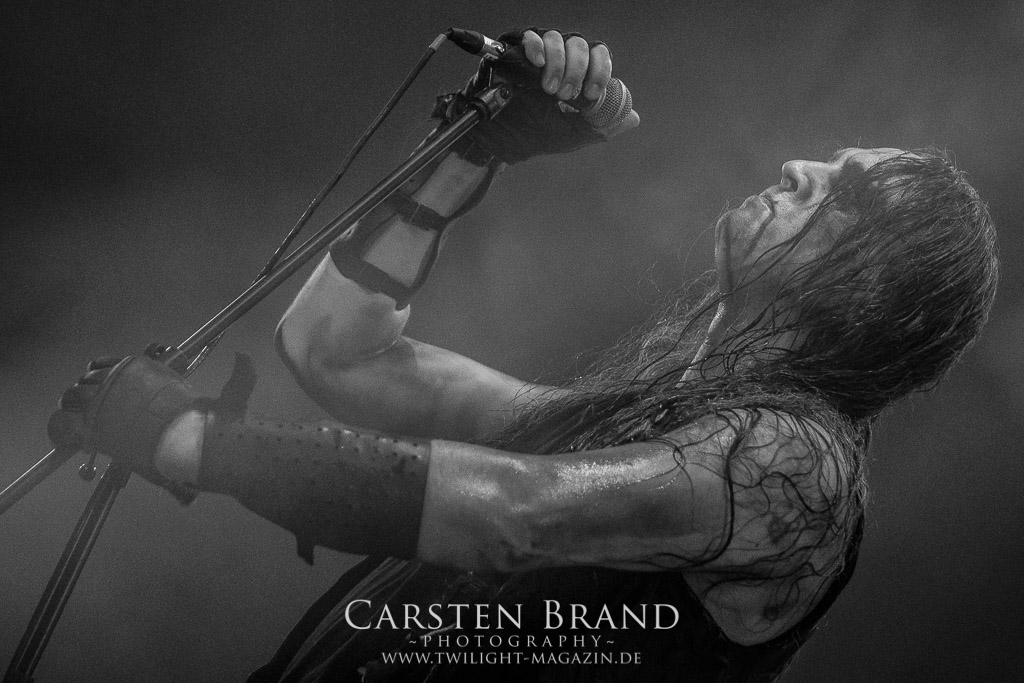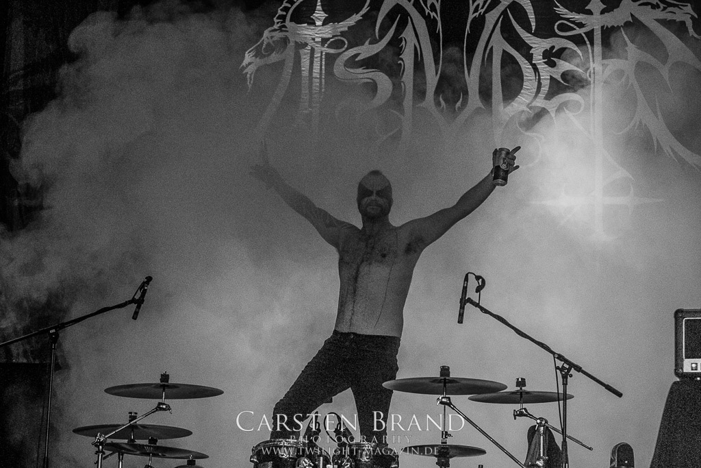 Der Schwedenhammer ergänzt hervorragend, was die skandinavischen Kollegen von TSJUDER angefangen haben. Mortuus präsentiert sich in gut gelaunter Form. Seine markerschütternden Growls kommen bereits vom ersten Track weg sehr gut beim Publikum an. Das Wolfsrudel macht keine Gefangenen und marschiert fleißig als Panzer DIvision Marduk über den Platz.