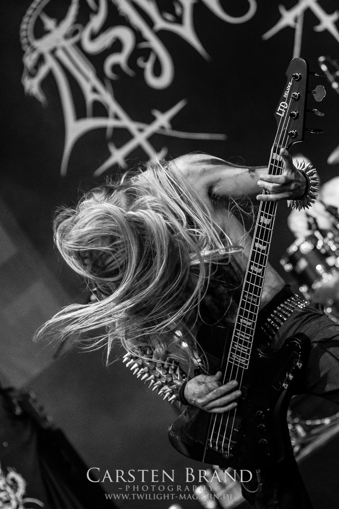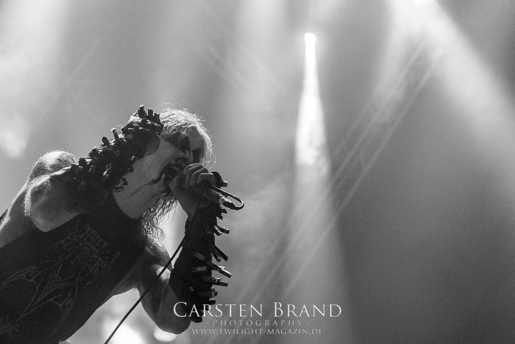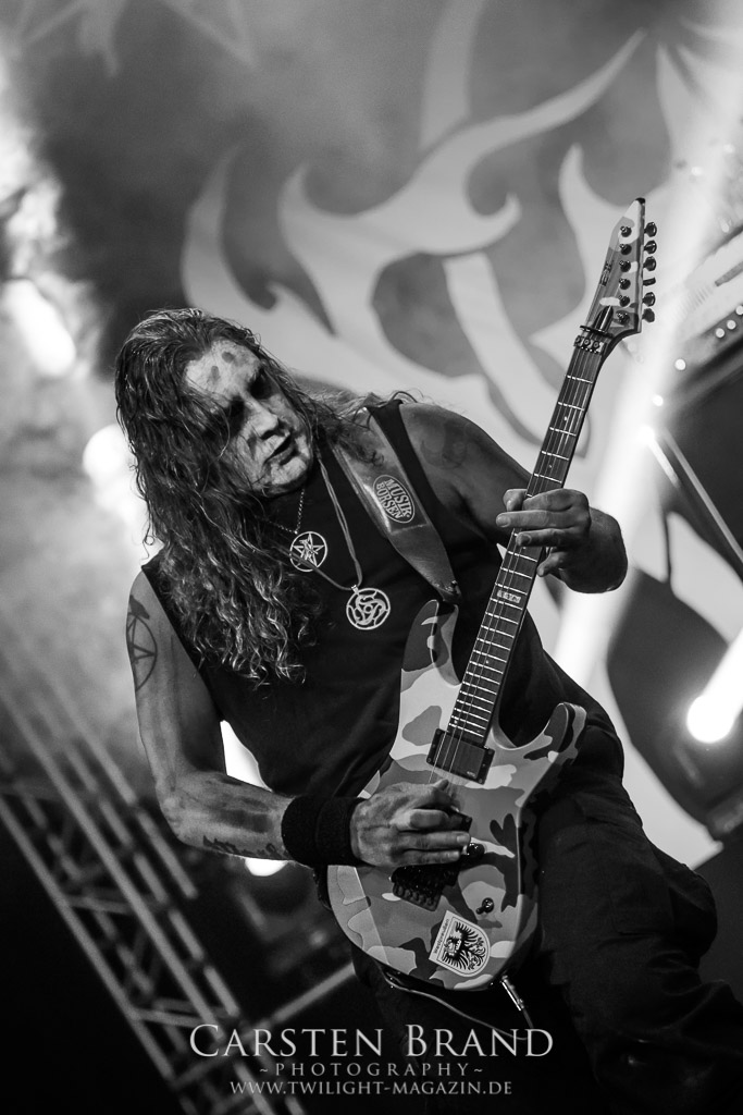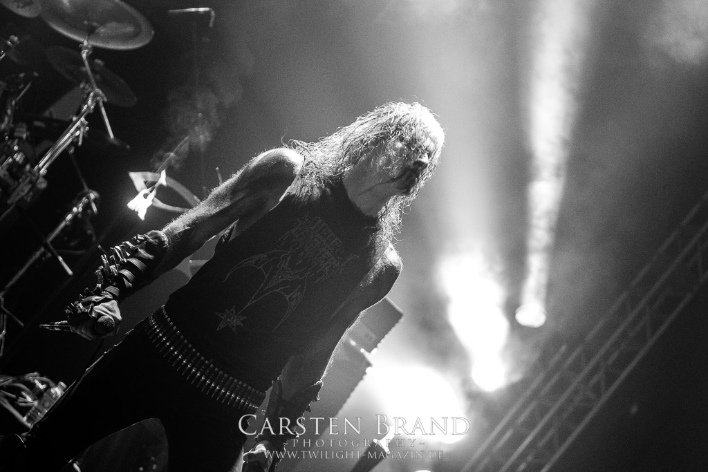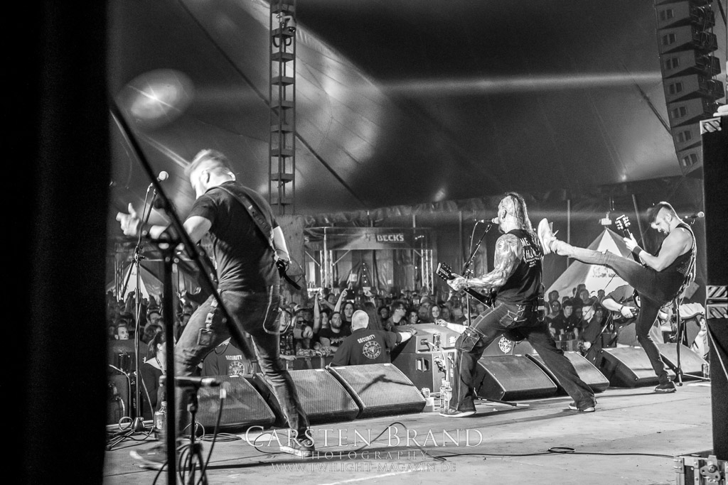 Der Schwedenhammer ergänzt hervorragend, was die skandinavischen Kollegen von TSJUDER angefangen haben. Mortuus präsentiert sich in gut gelaunter Form. Seine markerschütternden Growls kommen bereits vom ersten Track weg sehr gut beim Publikum an. Das Wolfsrudel macht keine Gefangenen und marschiert fleißig als Panzer DIvision Marduk über den Platz.