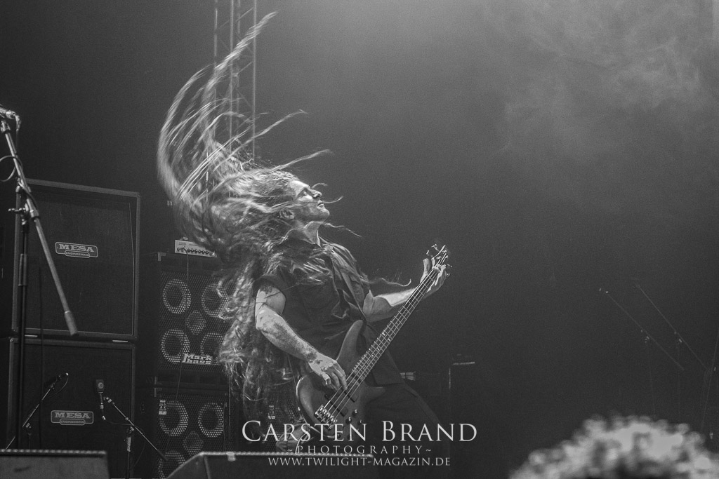 IMMOLATION haben den schweren Slot nach TSJUDER auf dem Zettel, Doch so schwer ist er gar nicht, Ebenfalls nur zu dritt auf der Bühne geht es mit den ersten Takt schon im Uptempo nach vorne. Nicht nur der Sänger lässt dabei seine Haare kreisen. Ein Auftritt vom Fach und sehr gut abgeliefert.