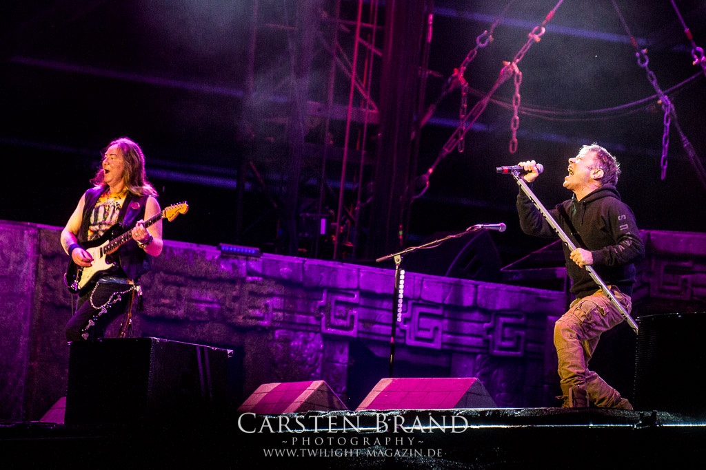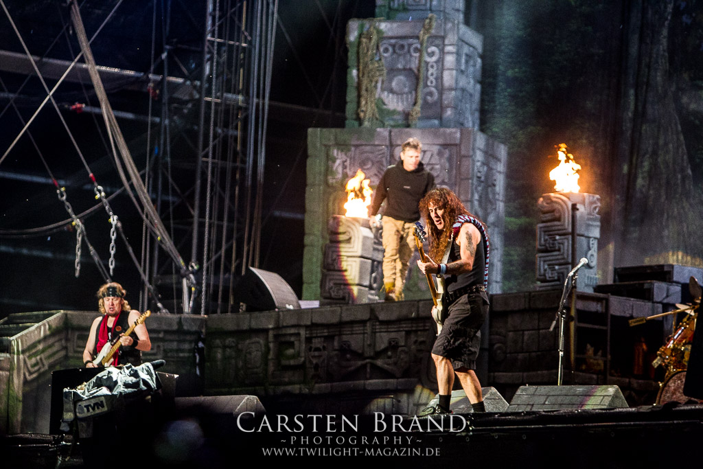 IRON MAIDEN auf dem Wacken und alle flippen aus. Das Gedränge vor der Bühne ist enorm groß und ich kann es ehrlich gesagt nicht im geringsten verstehen, wie despektierlich das Publikum werden kann. Beim Versuch, mit Equipment und offensichtlich arbeitend durch die Menge nach vorne zu gelangen wurd ich wüst beschimpft, nicht durchgelassen oder zumindest schief angeguckt. Und wenn einem das schon an den Seiten passiert, also gar nicht mal im unmittelbaren Vorbühnenbereich, dann gibt einem das schon zu denken. Der Auftritt selber ist sicherlich professionell, mag für mich aber eigentlich nicht auf ein Festival passen. Zudem wurde die Bühne für eine einzige Band den ganzen Tag gesperrt. Ob das dann sinnvoll ist, sei dahingestellt. Nach dem typischen „Doctor Doctor“ Intro geht es quer durch die Bandgeschichte. „Fear of the Dark“ oder „The Trooper“ dürfen nicht fehlen. Aufgrund der übervollen Publikumsmenge macht der Auftritt aber nicht wirklich Spaß. Highlight des Auftritts ist das Lied „Wasted Years“ was ich mir aber eher von sehr weit hinten ansehe, mit einem guten Getränk in der Hand.