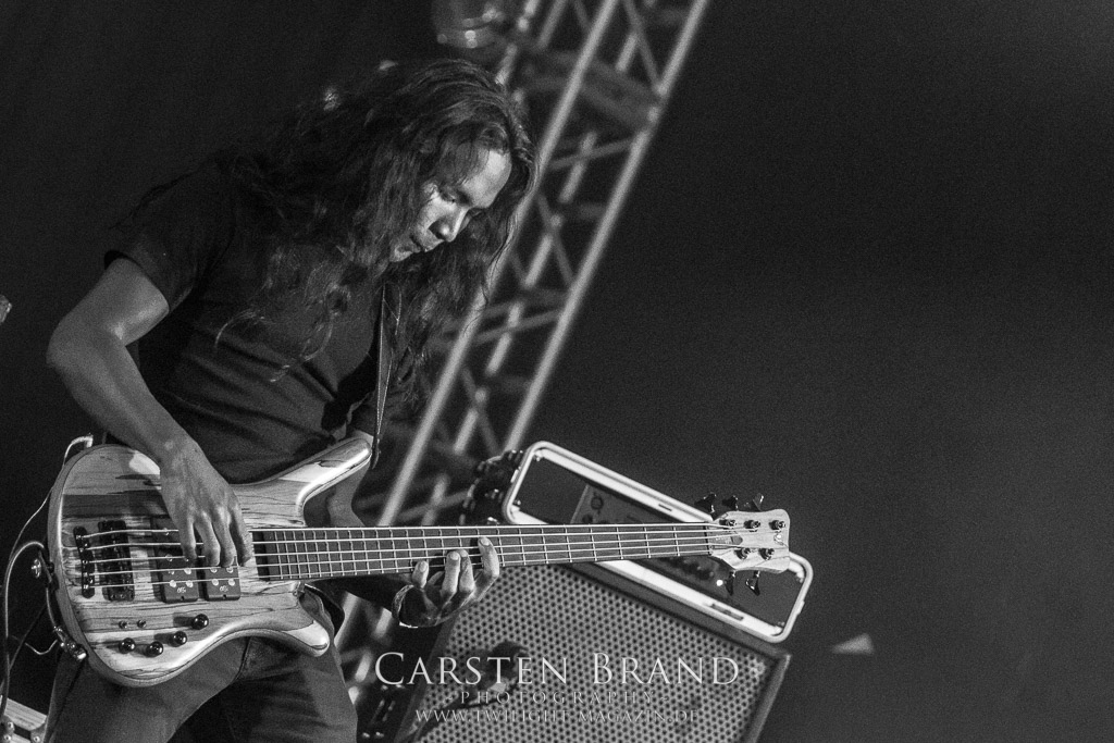 Zu eigentlich recht vorgerückter Stunde steht schwere Kost auf dem Plan. Das Solo Projekt des Emperor Frontmanns kann nicht wirklich mit kurzen Worten beschrieben werden. Ein Projekt, dass sehr facettenreich und nicht gerade als besonders eingängig zu werten ist. man muss sich schon einlassen können und bereit für die Musik sein. Verfrickelte Gitarren, Keyboards, ein Schlagzeug dass zwischen Mid und Uptempo munter hin und her wechselt. Und dazu ein Gesang, der von absolut klar bin hin zum Kreischen seine komplette Bandbreite ausspielt. Trotz der späten Uhrzeit finden IHSAHN ihre Fans im gut aufgestellten Publikum wieder.