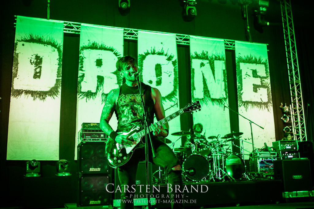 Unsere Freunde aus der Heimat arbeiten nicht nur auf dem Wacken, sondern sind auch auf der Bühne spielend präsent. DRONE spielen frisch auf feinsten Thrash Metal. Eine feine Portion Wuchtbrumme von 45 Minuten Masse.