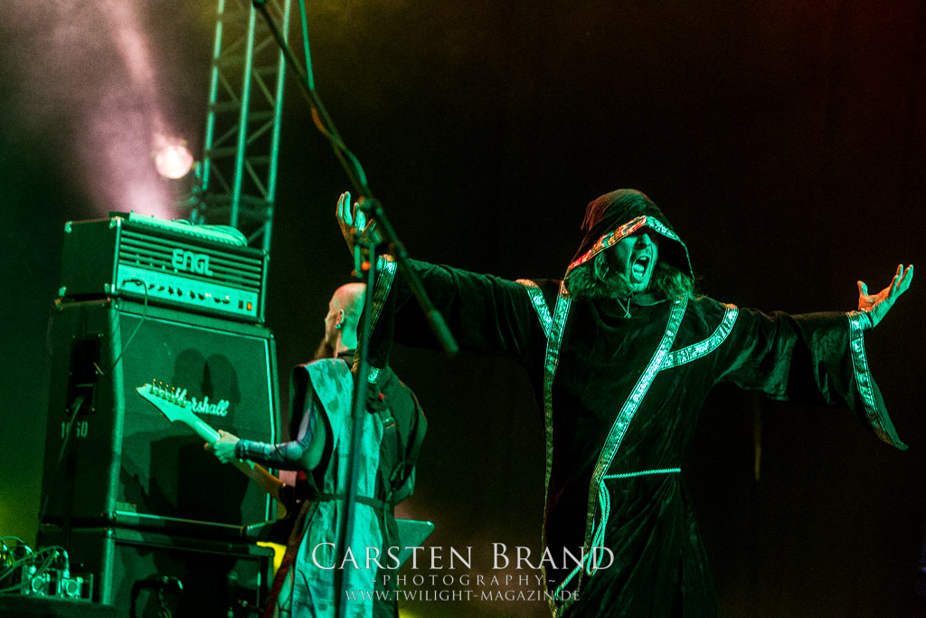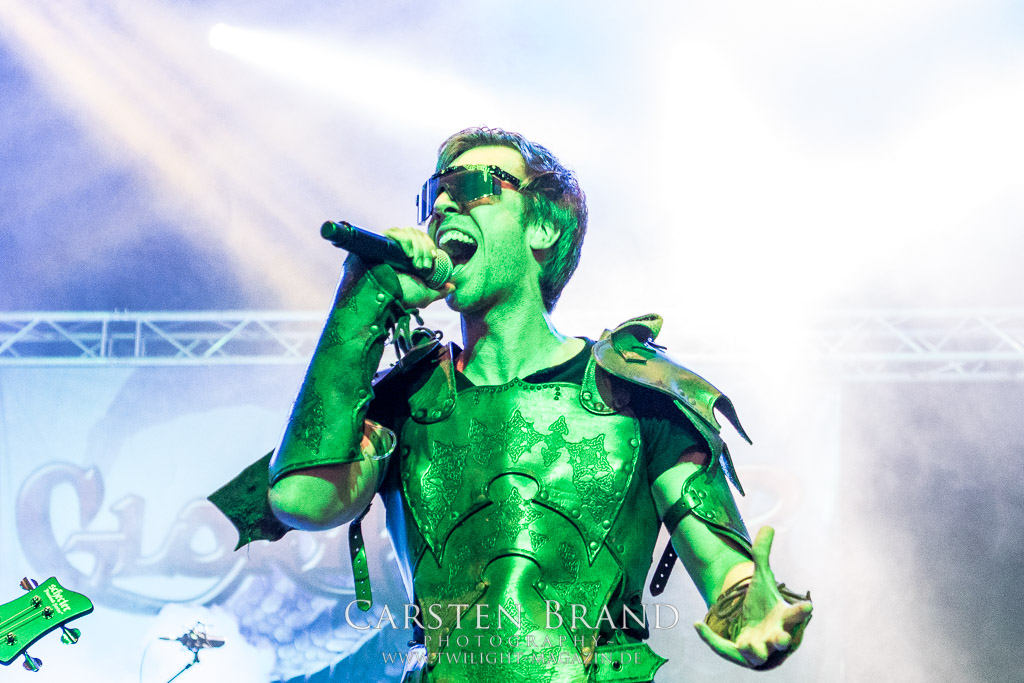 Eigentlich ist die Party Satage ja sehr weit entfernt von der Headbanger Stage. Dennoch entern GLORYHAMMER mit ihrem Fantast Metal zum frühen Abend das Zelt. Auf der Suche nach Einhörnern, Drachentötern oder der Prinzessin, irgendwo dazwischen bewegen sich die Herren des Power Metal. „ I wanna set the universe on fire“. Das Universum muss vor bösen Schurken verteidigt werden. Die Musik ist recht simpel zu beschreiben: Eingängiger Power Metal mit sehr viel Ohrwurm Charakter, einfachen Refrains und einer Menge Ironie oder einfach: Spaß an der Sache. Man könnte es als billigen Klamauk betiteln. Wer allerdings sich mal überwunden hat, die Show der Helden anzusehen, wird schnell überzeugt. Der Slot macht einfach wahnsinnig Spaß, das Bein wippt sehr schnell mit dem Takt mit. Und spätestens ab dem zweiten Track fühlt man sich ebenfalls als Ritter und Retter der Galaxie. Es fehlt nicht an Klischees und diese werden auch fleißig bedient und gepflegt. „Legend of the Astral Hammer“ ist dafür ein gutes Beispiel. Grandioses Kino auf ganzem hohen Spaß Level.