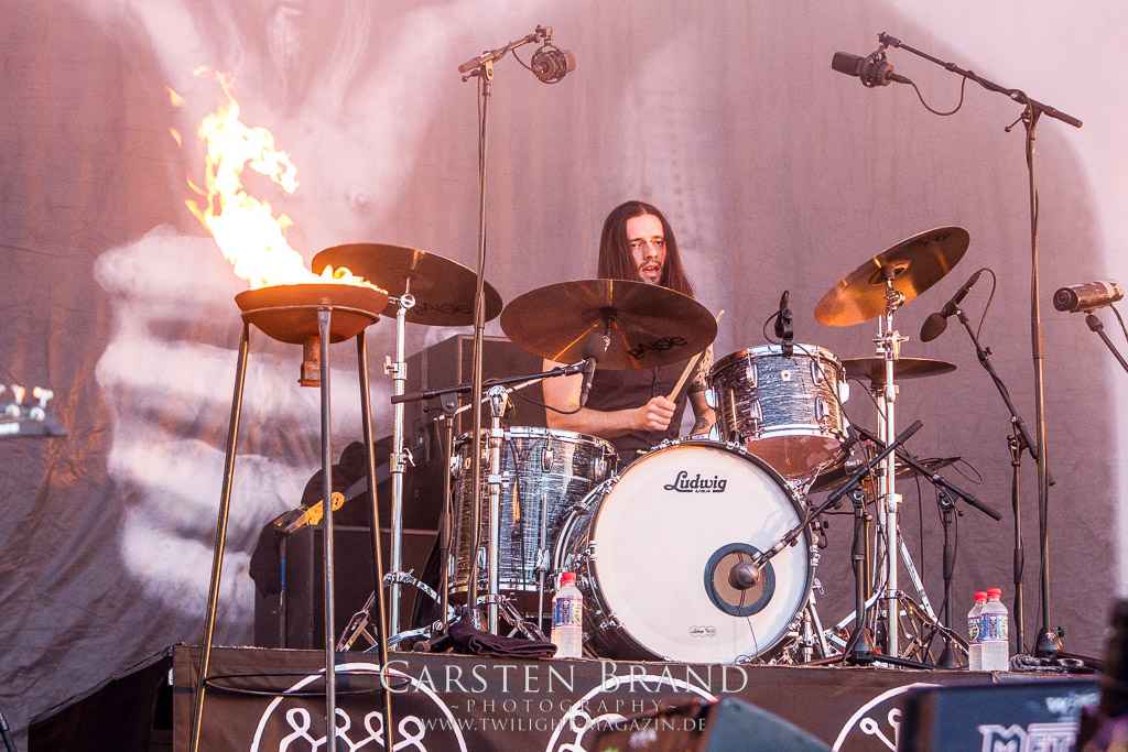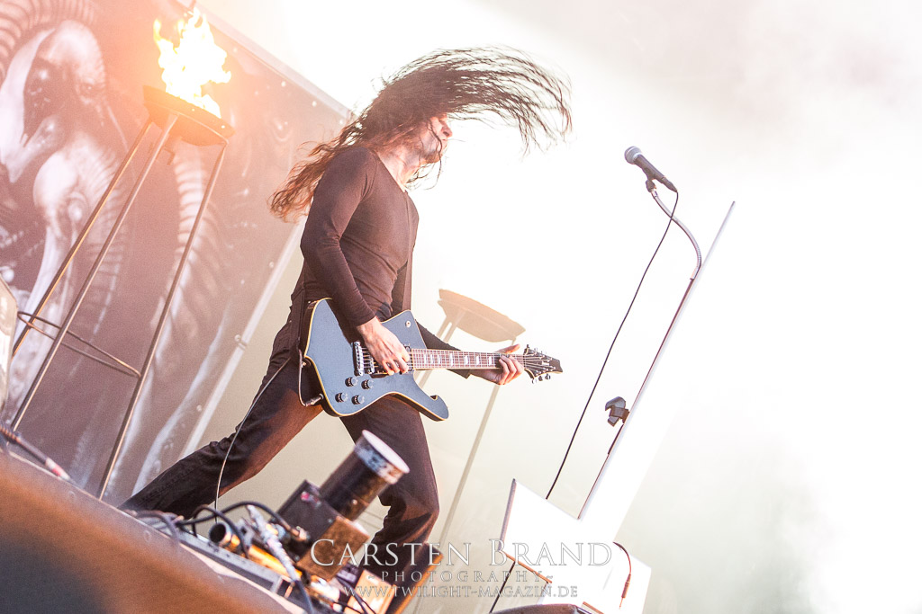 ALCEST sind nicht nur ein Geheimtip, mittlerweile haben sie auch einen immer größeren Fan Kreis. Und das ist auch absolut verdient. Ob man das Ganze nun Showgaze, Avantgarde oder wie auch immer betiteln mag, die Franzosen schaffen ihre eigenen Schublade. Mit Spuren aus den verschiedenen Spielarten des Metal verzaubern ALCEST und entführen in ihre eigene Welt. Begonnen wurde mit „Ecailles de Lune Pt. 1“ und „Ecailles de Lune Pt. 2“. Ein perfekter Einstieg, der entschleunigt, der einen abholt und das Tor zu ALCEST öffnet. Das Zelt spielt hier abermals seinen Vorteil aus, auch bei Tageslicht im Dunkeln spielen zu können. Denn auch die Lichtshow ist speziell abgestimmt (Grüße an Wirklicht). Dass die Band aber auch Wurzeln im Black Metal hat zeigt Frontmann Neige überdeutlich mit seinen abgrundtief hässlichen Growls, die die zuvor geschaffene Ruhe jäh durchschneiden. Highlight des Auftrittes bleibt aber „Percées de Lumière“, indem wieder einmal atmosphärische Midtempo Parts einhergehen mit einem eher klagenden Black Metal Gesang.