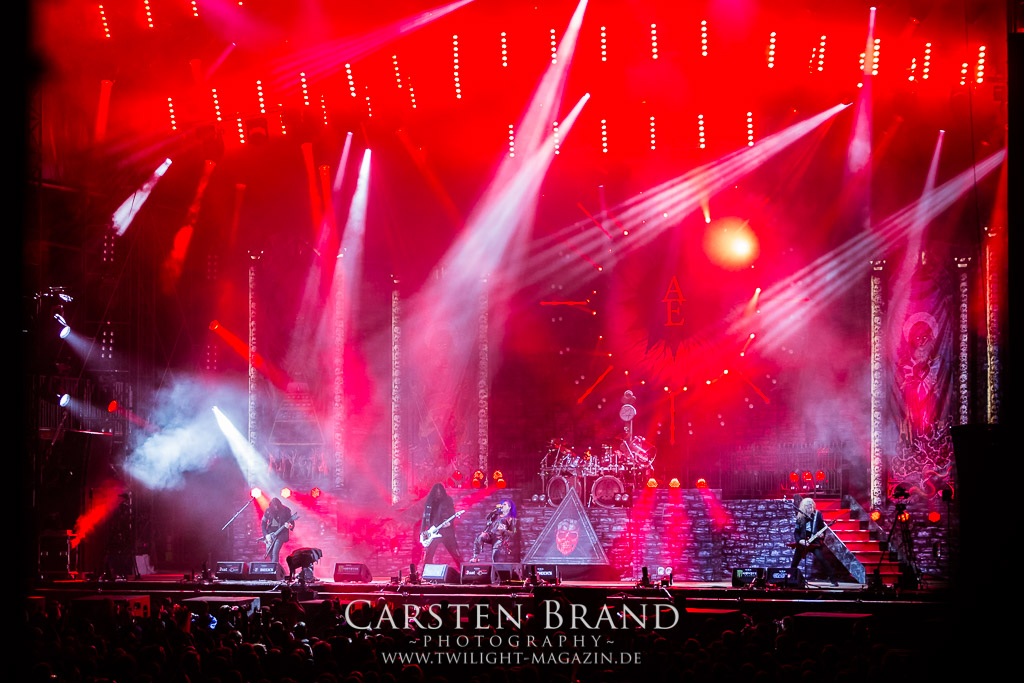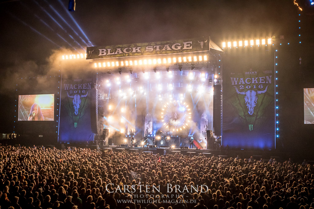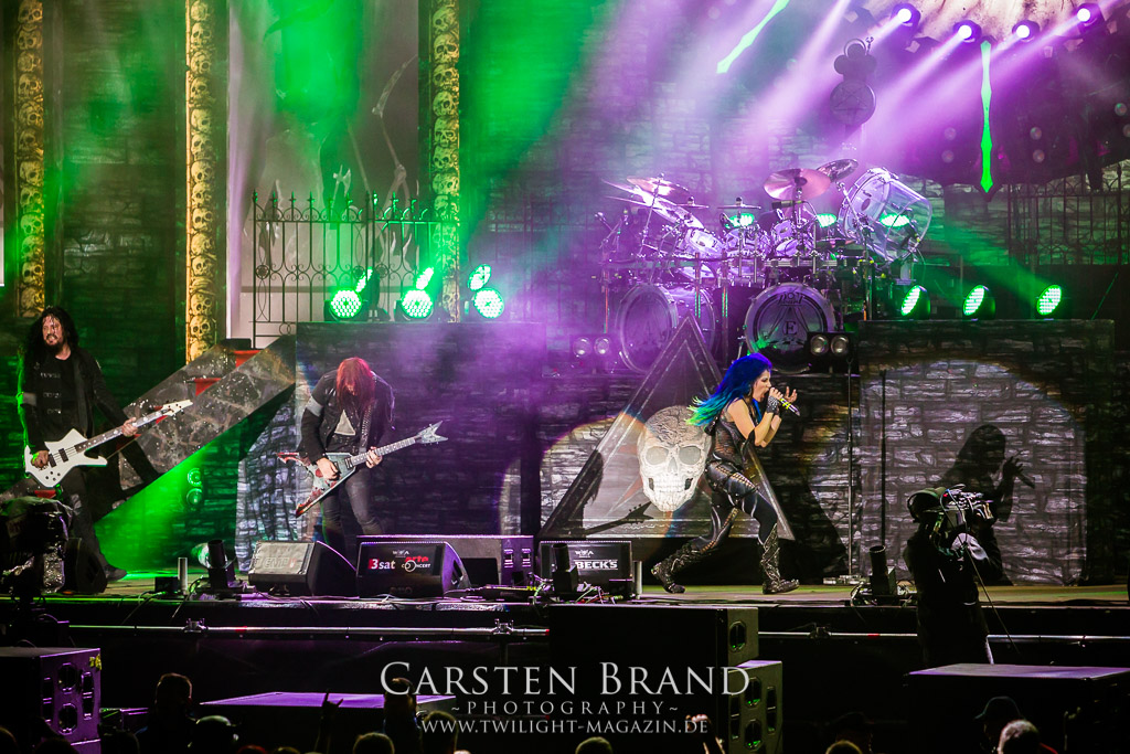 Ein Highlight des Festivals hat sich fast auf den hinteren Slots versteckt. ARCH ENEMY planen eine Live DVD und nutzen hierzu den Auftritt des Wacken, um auf einer ausreichend großen Spielfläche zu performen. Nicht weniger als 13 Kamera Perspektiven lassen den Auftritt ins Wohnzimmer des Fans nach Hause kommen. Doch zunächst einmal soll das Wackener Publikum ihn live erleben dürfen. Die nicht mehr ganz so neue Frontdame Alissa White Gluz hat sich hervorragend in die Band integriert und überzeugt auf ganzer Linie mit einer unheimlichen Bühnenpräsenz. Trotz der sehr späten Uhrzeit und einem sich dem Ende neigenden Wacken Festival ist das Publikum noch immer bei Kraft und Laune, die Band lautstark zu unterstützen. ARCH ENEMY liefern professionell ab. Melodic Death vom Feinsten.