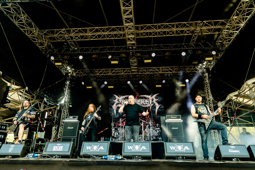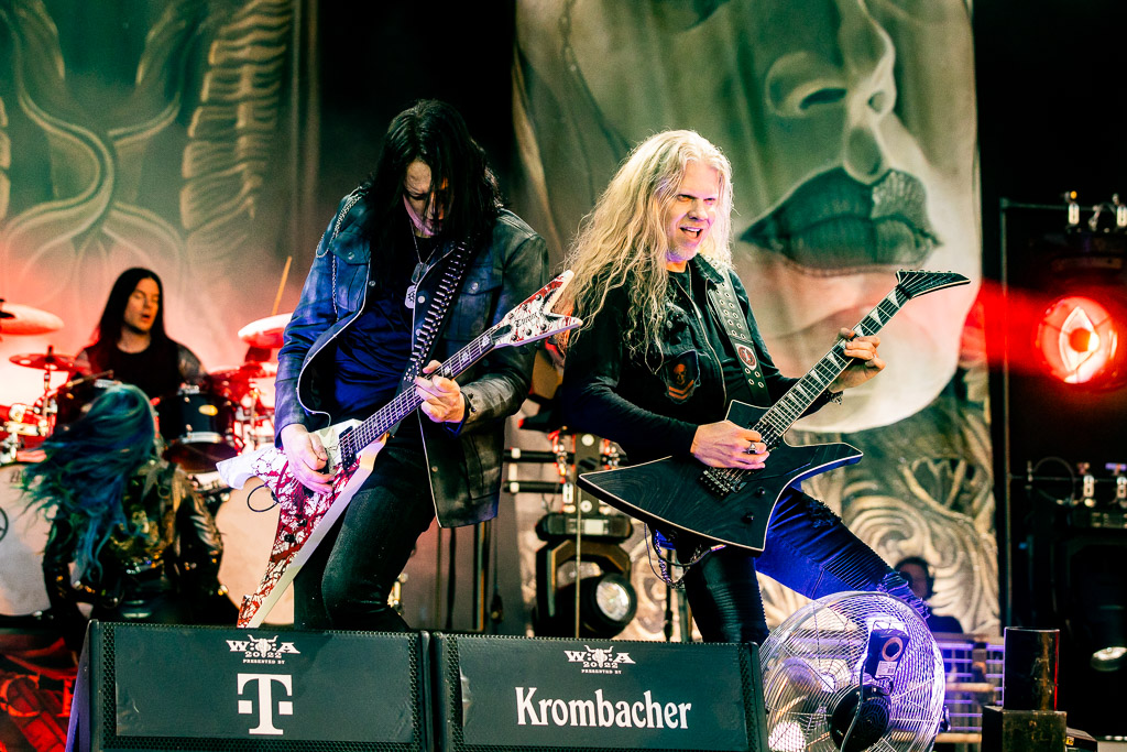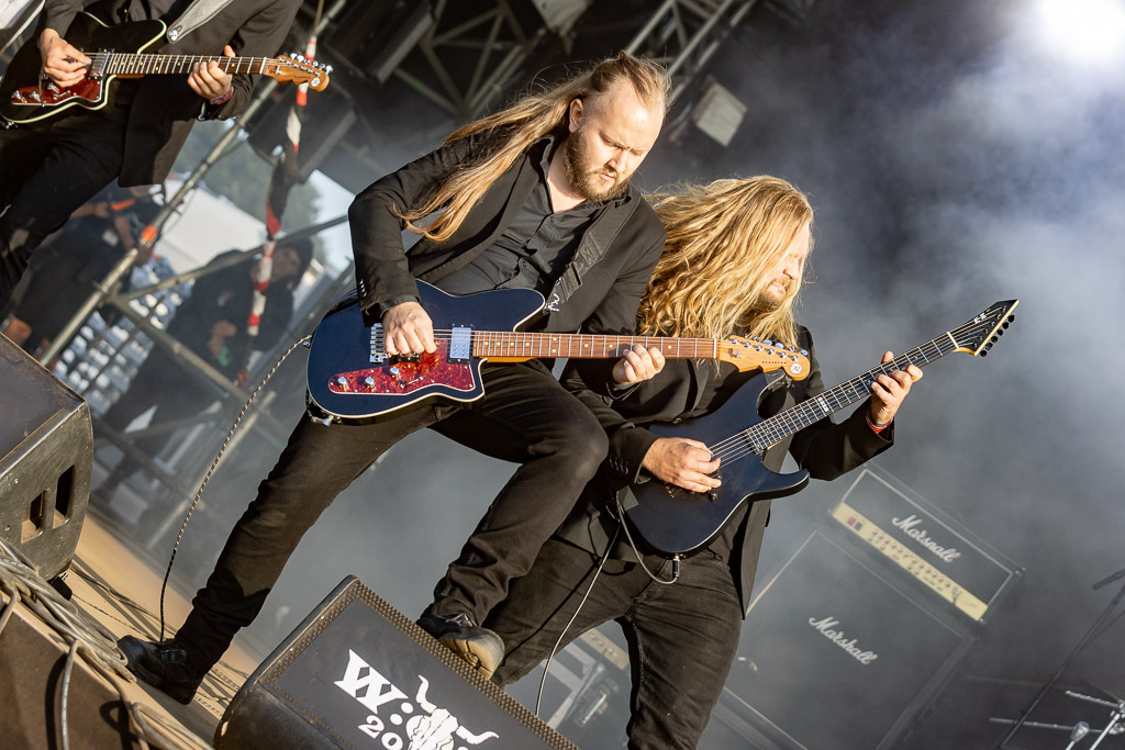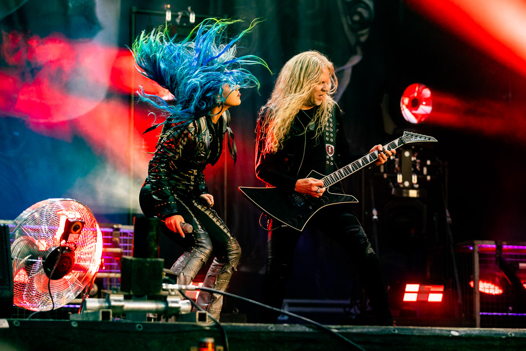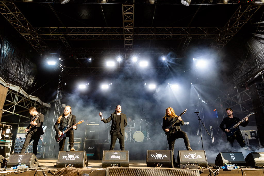 Weiter geht es mit Gloryhammer… oder eben auch nicht. Diese kommen gerade noch rechtzeitig für vier Songs auf die Bühne. Man könnte meinen, die Schweizer arbeiten mit Hochdruck an einer gemeinsamen WOA-Historie. Nachdem sie bereits 2019 wegen Unwetter nicht spielen konnten, verpasste die Kombo dieses Mal den Flieger, stand stundenlang im Stau, um ohne Anlauf direkt auf der Bühne performen zu müssen. Erstaunlicherweise gelingt ihnen das problemlos, jeder der vier verbliebenen Songs wird zelebriert und der Kurzauftritt zu einem wahren Fest.