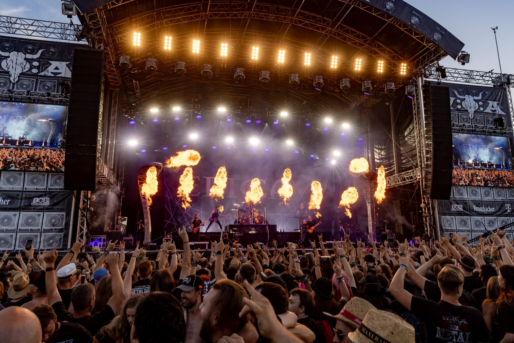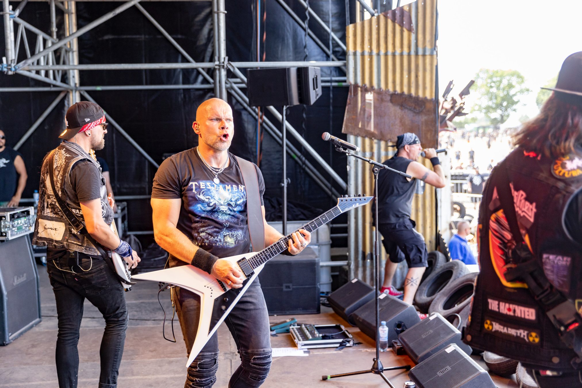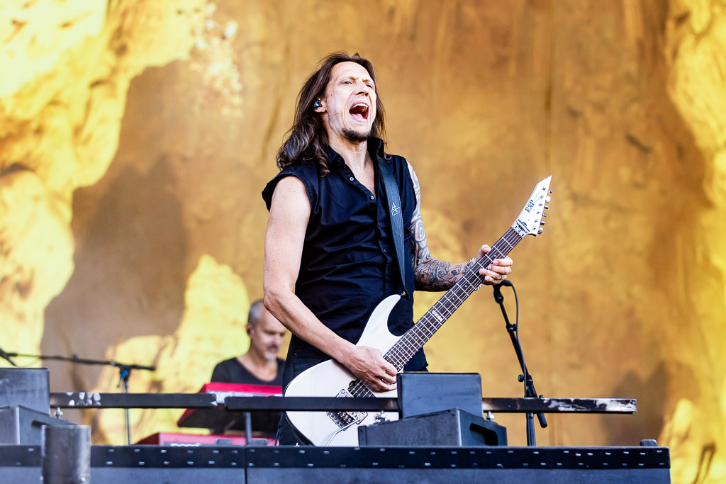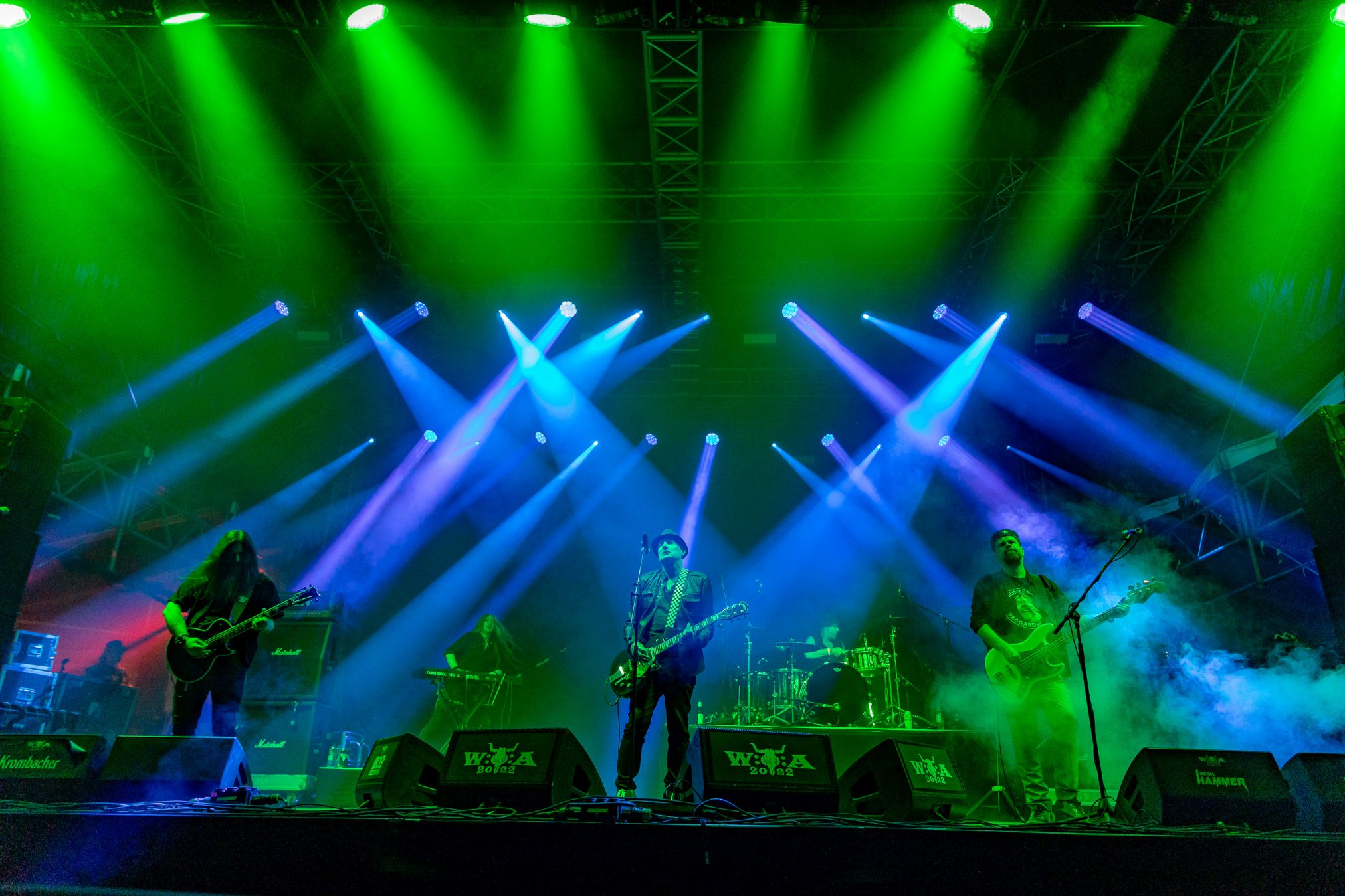 Weiter geht es mit Gloryhammer… oder eben auch nicht. Diese kommen gerade noch rechtzeitig für vier Songs auf die Bühne. Man könnte meinen, die Schweizer arbeiten mit Hochdruck an einer gemeinsamen WOA-Historie. Nachdem sie bereits 2019 wegen Unwetter nicht spielen konnten, verpasste die Kombo dieses Mal den Flieger, stand stundenlang im Stau, um ohne Anlauf direkt auf der Bühne performen zu müssen. Erstaunlicherweise gelingt ihnen das problemlos, jeder der vier verbliebenen Songs wird zelebriert und der Kurzauftritt zu einem wahren Fest.