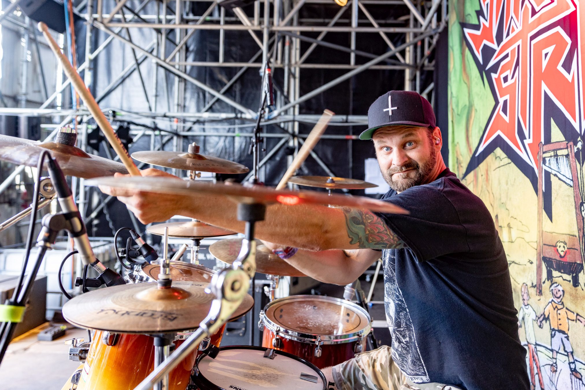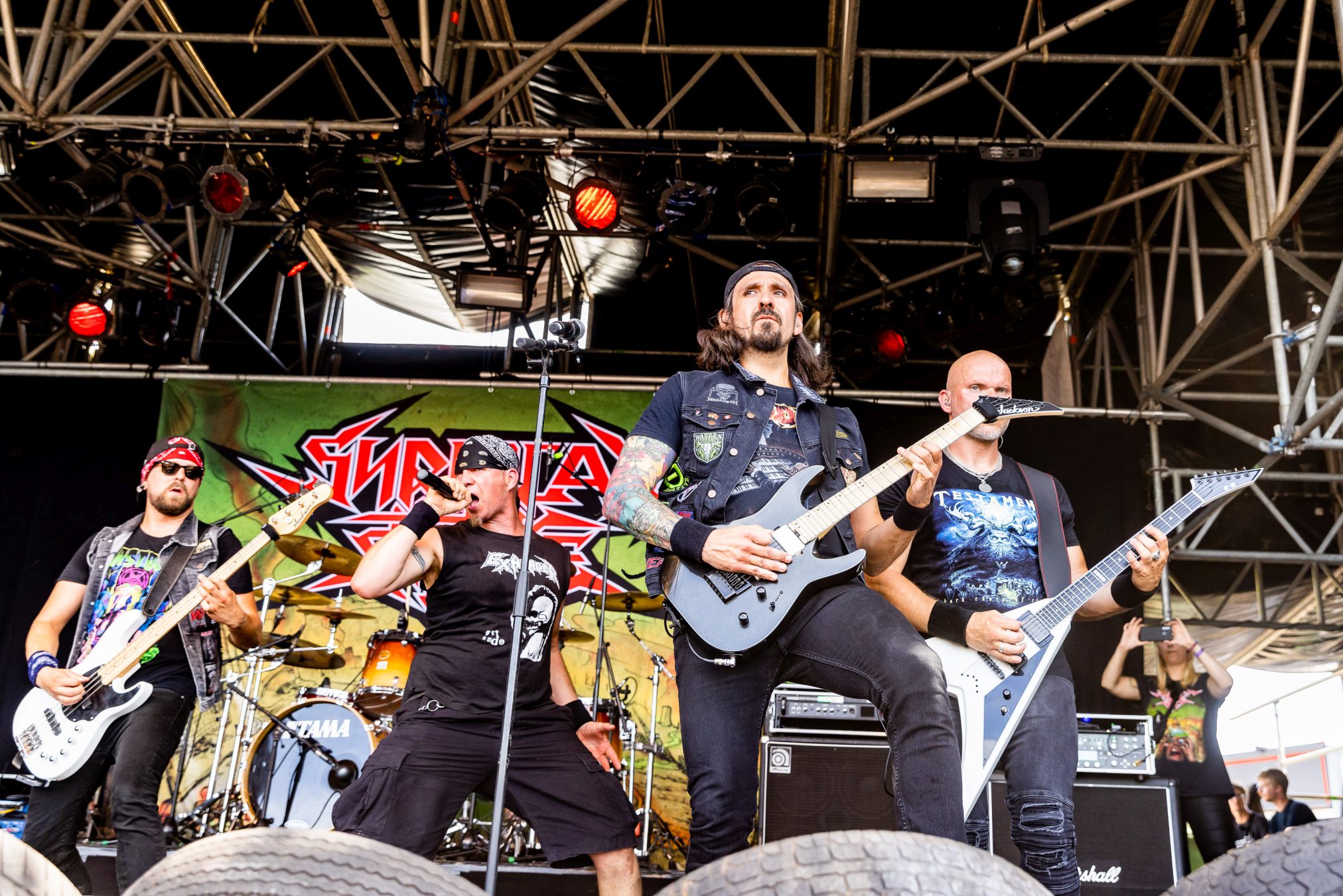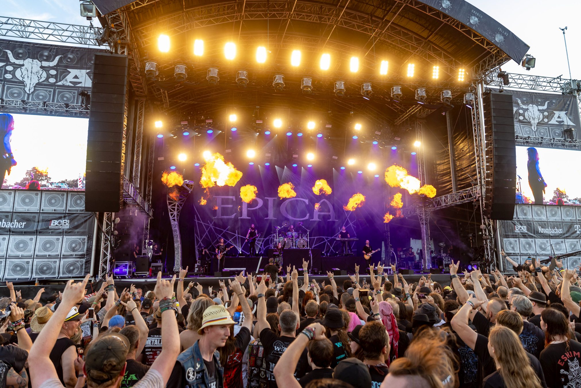 Von der „Minibühne“ zieht des uns zurück auf Faster Stage, dem linken Teil der großen Doppelbühne, zu den Göttern des Death Metal HYPOCRISY, nur um die Enttäuschung des Festivals zu erleben. Was vom (nennen wir es mal) Sound bei uns ankommt geht gar nicht. Sind wir doch auf dem falschen Festival gelandet? Seit Jahren lobpreisen wir zurecht die vorbildlichen Voraussetzungen auf dem WOA für kleine und große Bands, da über alle Bühnen hinweg Sound und Licht stimmen und dann so etwas auf einer der großen Bühne? Wir versuchen der Sache eine Chance zu geben und meinen sogar den Klassiker „Eraser“ erkennen zu können, drehen dann aber doch ab und geben dem Biergarten den Vorzug. Wäre KISSIN‘ DYNAMITE nicht gewesen, unsere Laune wäre hart auf dem Boden aufgeschlagen. So verbleibt nur Mitleid mit den Männern um Peter Tägtgren, die hier Vollgas geben und (wie wir schon erleben durften) mit dem richtigen Sound immer dazu in der Lage sind, einen unvergesslichen Abend einzuleiten.