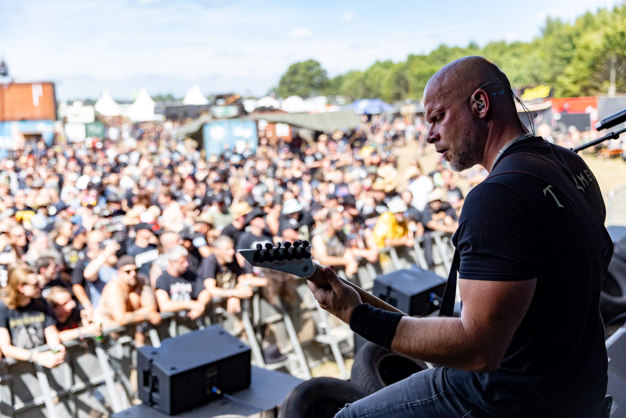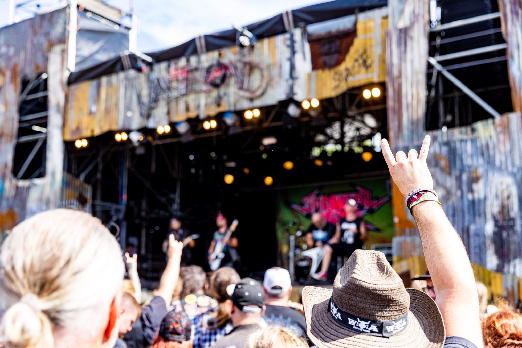 Trotz eines starken Auftritts gelingt es uns nicht vollends, die Energie und den Spaß aufzugreifen, da die Hitze heute erdrückend ist. Schnell wünschen wir uns eine Wasserstelle herbei. Da die nächstgrößere hinter dem Notausgang wartet, der nur als Ausgang passiert werden darf, entscheiden wir uns doch gegen Erfrischung und Zwangsspaziergang. Auf der Suche nach Alternativen an den Getränkeständen fällt auf, dass das neue und eigens für die Louder Stage geschaffene Gelände, überlastet zu sein scheint. Vielleicht ist THUNDERMOTHER für die „kleine“ Bühne doch eine Nummer zu groß oder das Verhältnis von Bühne zu Gelände und Angebot nicht passend. Hier sollte das WOA-Team noch mal genauer hinsehen.