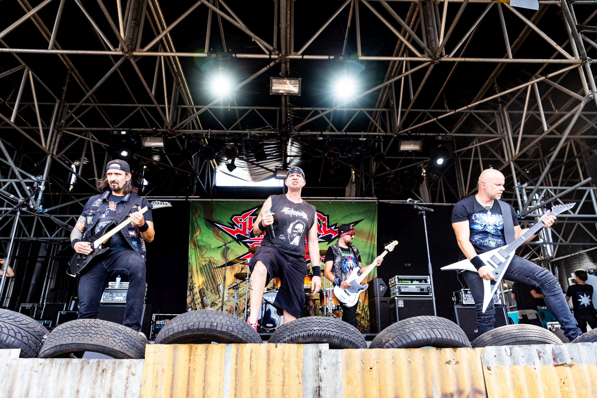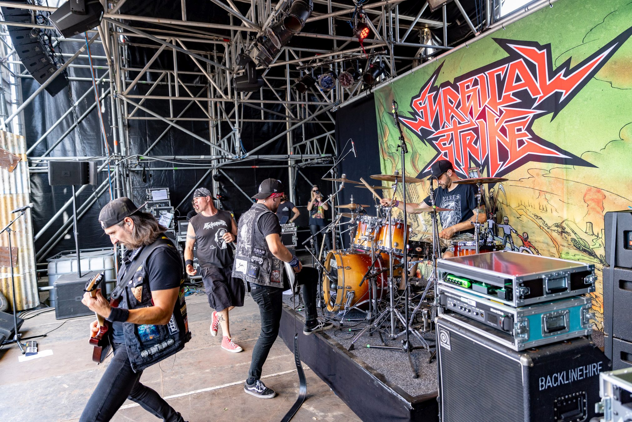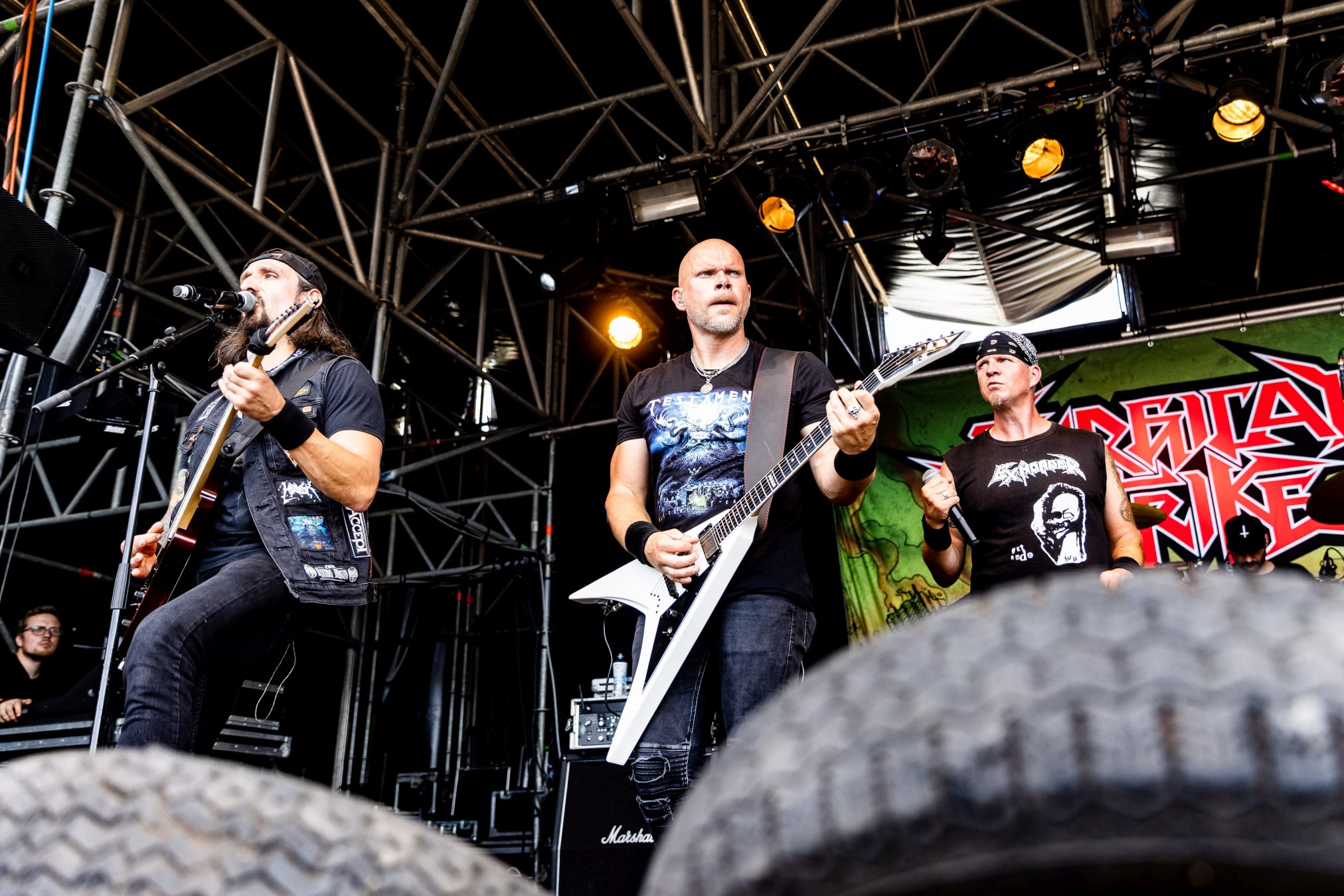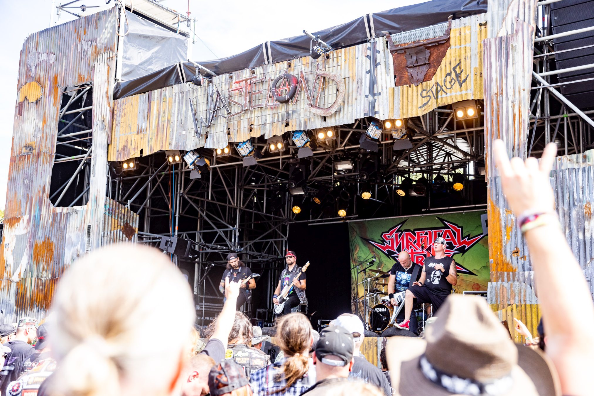 Auf der Wasteland Stage luden SURGICAL STRIKE zum Mittags-Thrash ein. Zu Beginn der Show wollten die Fans noch nicht so richtig den Weg in Richtung Bühne finden, was sich aber zum Glück bald änderte. Wäre auch schade gewesen, da die Band eine super Performance ablieferte und es Sänger Stöpsel wie ein Großer verstand, die Menge zu begeistern.