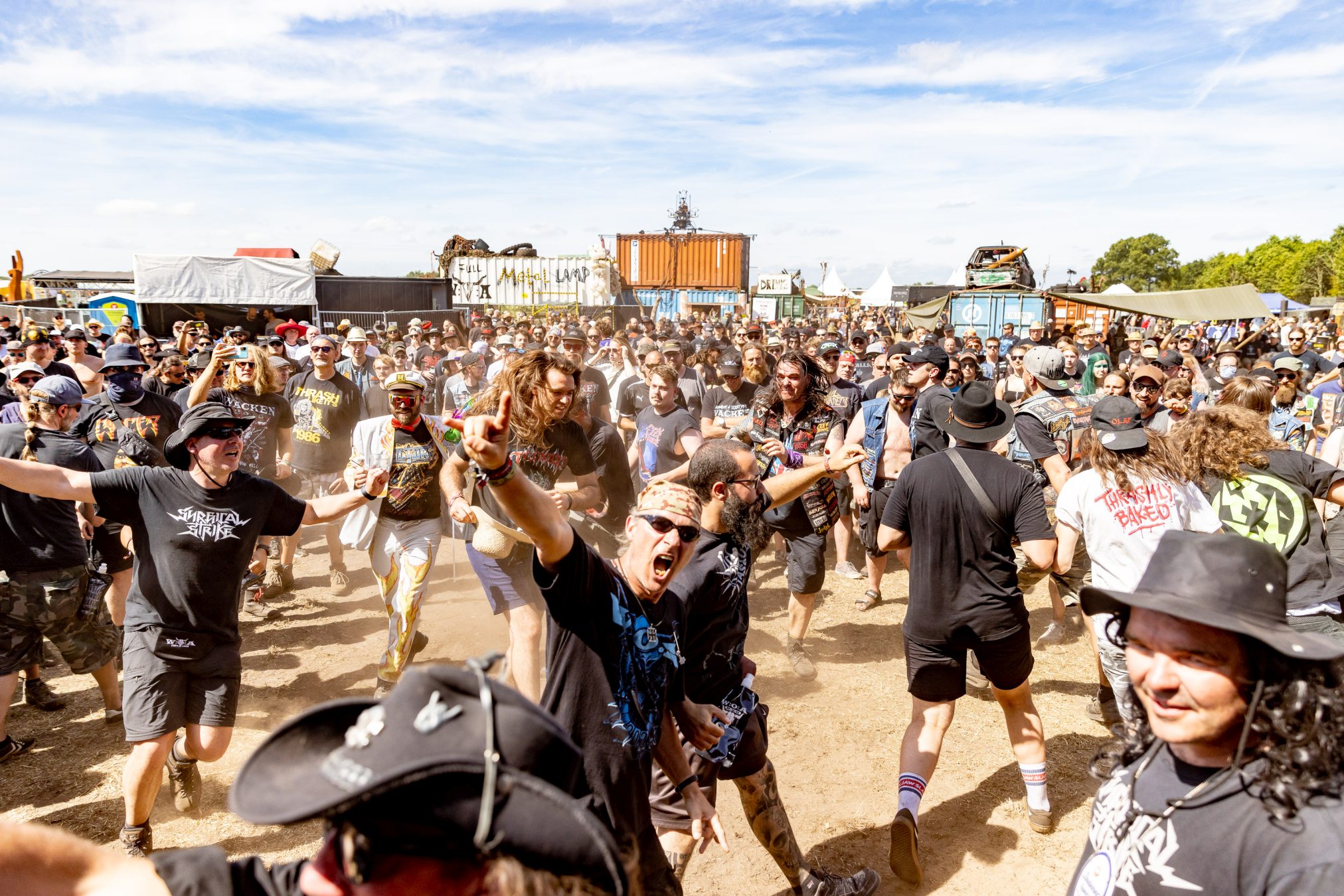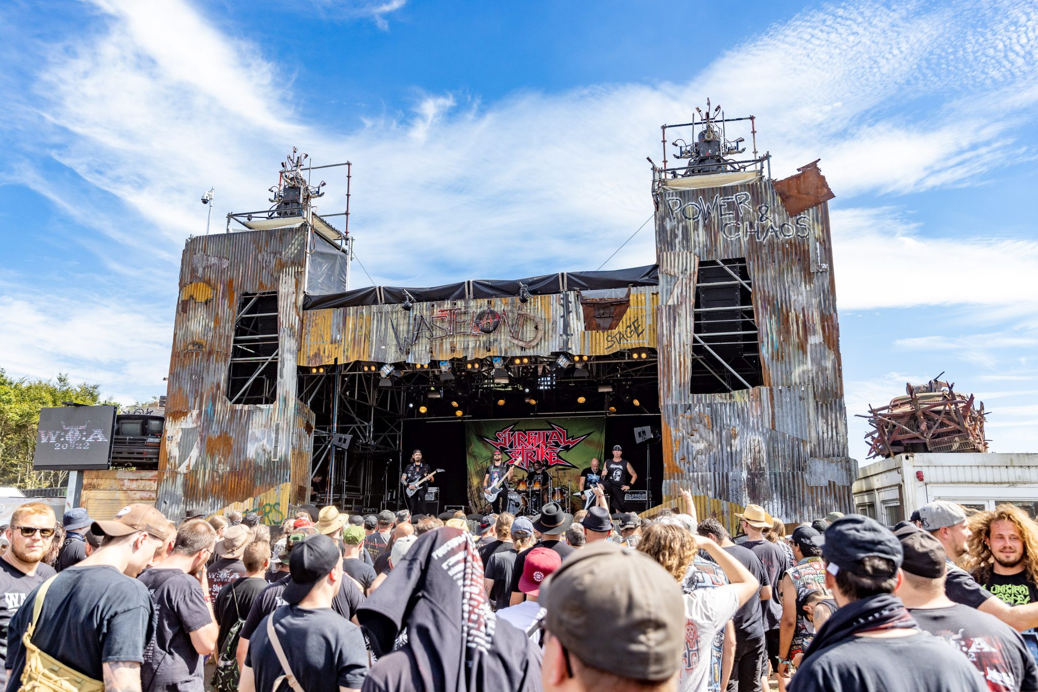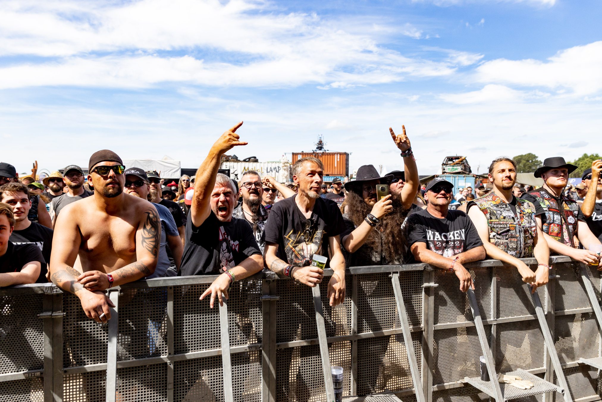 Bei maximal einem Bier resümieren wir mit unseren neu gewonnen Tischfreunden den vergangenen Tag und bekommen unsere Meinung bestätigt, zu wenige Wasserstellen auf dem Infield zu haben. In Anbetracht der Wetterprognose verwundert dieser Rückschritt, da dies bei den WOAs 2018 und 2019 bereits gut gelöst war. Wir mutmaßen nur leise und sind positiv der Annahme, dass die Wasserstellen der Restrukturierung des Geländes zum Opfer gefallen sind. Wie wir die Veranstalter kennengelernt haben, werden diese das Besucherfeedback aufnehmen und auswerten und schon 2023 wieder besser aufgestellt sein. Beim WOA stand bis hierhin immer der Fan im Mittelpunkt.