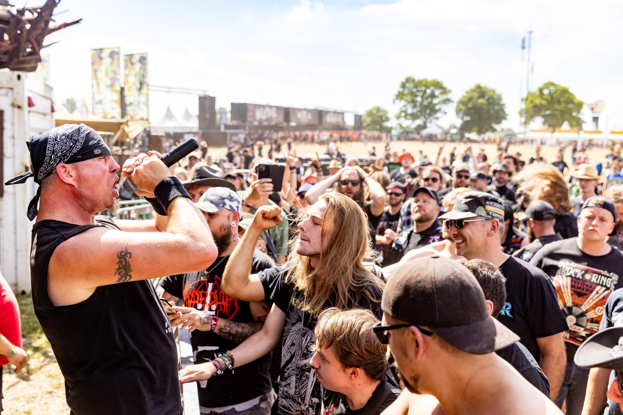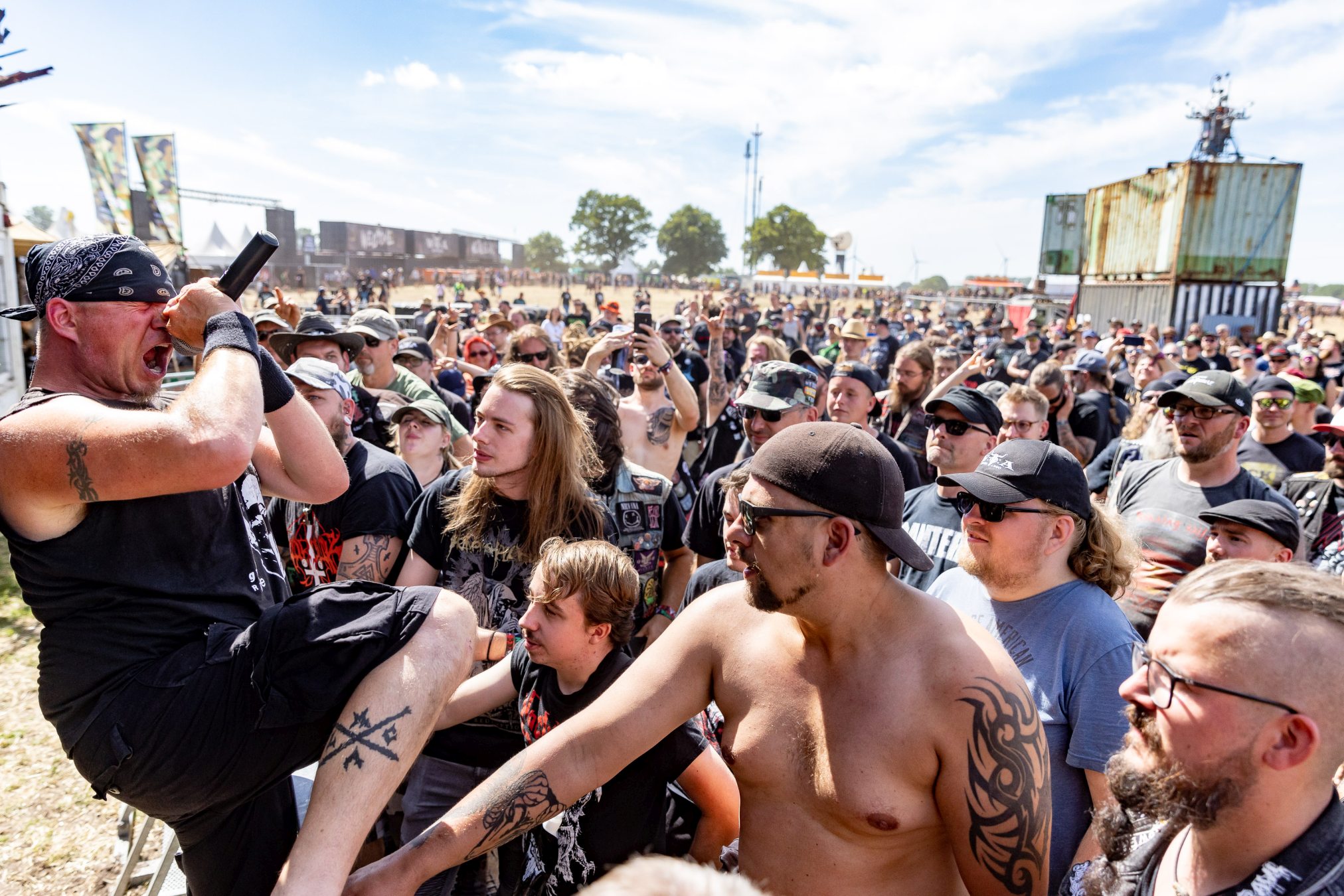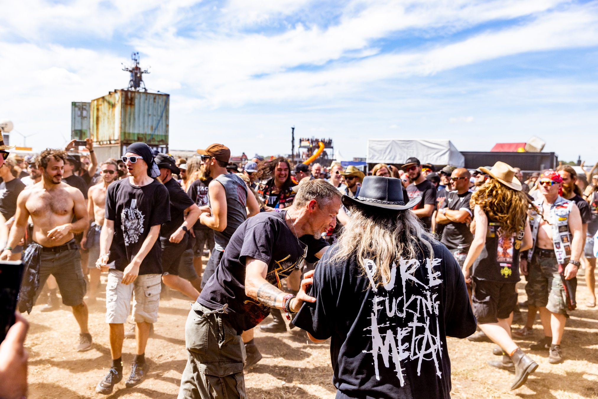Bei maximal einem Bier resümieren wir mit unseren neu gewonnen Tischfreunden den vergangenen Tag und bekommen unsere Meinung bestätigt, zu wenige Wasserstellen auf dem Infield zu haben. In Anbetracht der Wetterprognose verwundert dieser Rückschritt, da dies bei den WOAs 2018 und 2019 bereits gut gelöst war. Wir mutmaßen nur leise und sind positiv der Annahme, dass die Wasserstellen der Restrukturierung des Geländes zum Opfer gefallen sind. Wie wir die Veranstalter kennengelernt haben, werden diese das Besucherfeedback aufnehmen und auswerten und schon 2023 wieder besser aufgestellt sein. Beim WOA stand bis hierhin immer der Fan im Mittelpunkt.