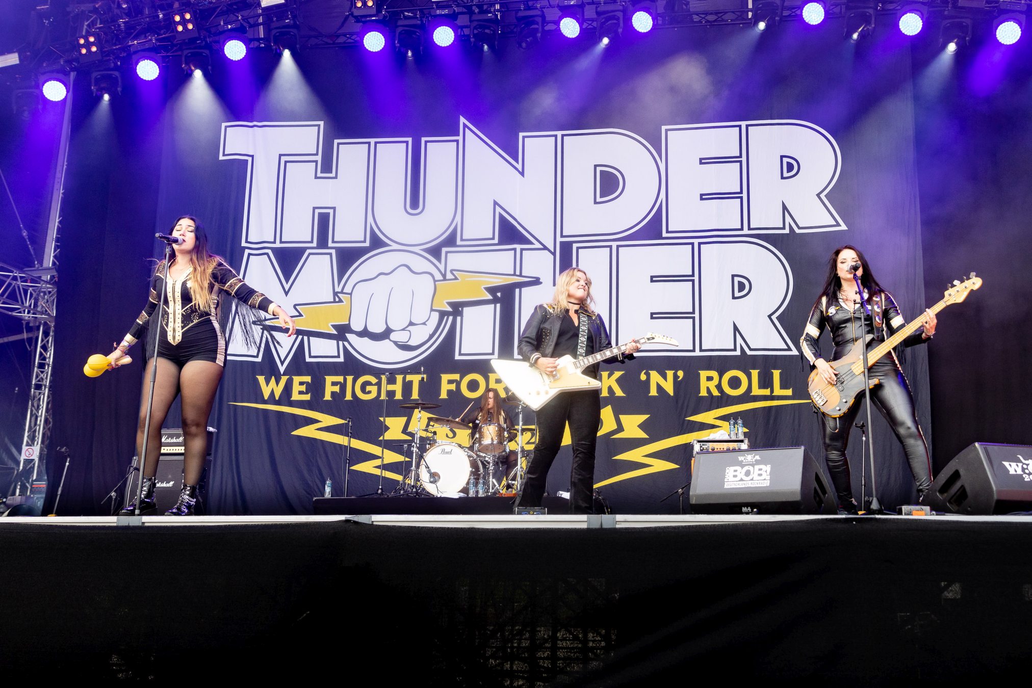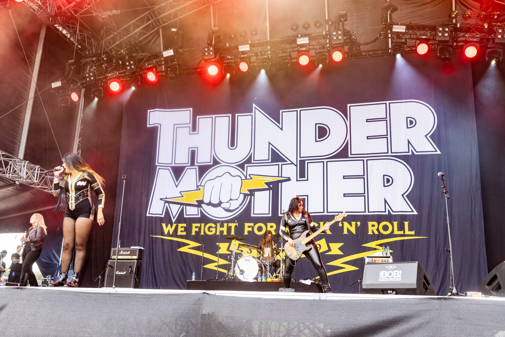 Der Wacken Donnerstag stand in den vergangenen Jahren immer für den klassischen Rock und Metal. Ob dieser bei gefühlten 35 Grad immer noch zündet, bleibt herauszufinden. An unserem ersten Act THUNDERMOTHER wird es jedenfalls nicht liegen. Die Schwedinnen legen volles Brett los und feuern mit „Into The Mud“, „Back In 76“ und “Hellavator“ eine Rocknummer nach der anderen ab. Wer meint, die Band wäre mit der Neuformierung 2017 nur noch ein Abklatsch ihrer selbst, wird hier schnell eines besseren belehrt. Die vier Damen sprühen vor Energie und haben sichtlich Spaß daran, auf der Bühne zu stehen. Wenn sie diese mit auf ihre Tour übertragen können, wird ihnen sicher der ein oder andere SCORPIONS- oder WHITESNAKE-Fan verfallen.
