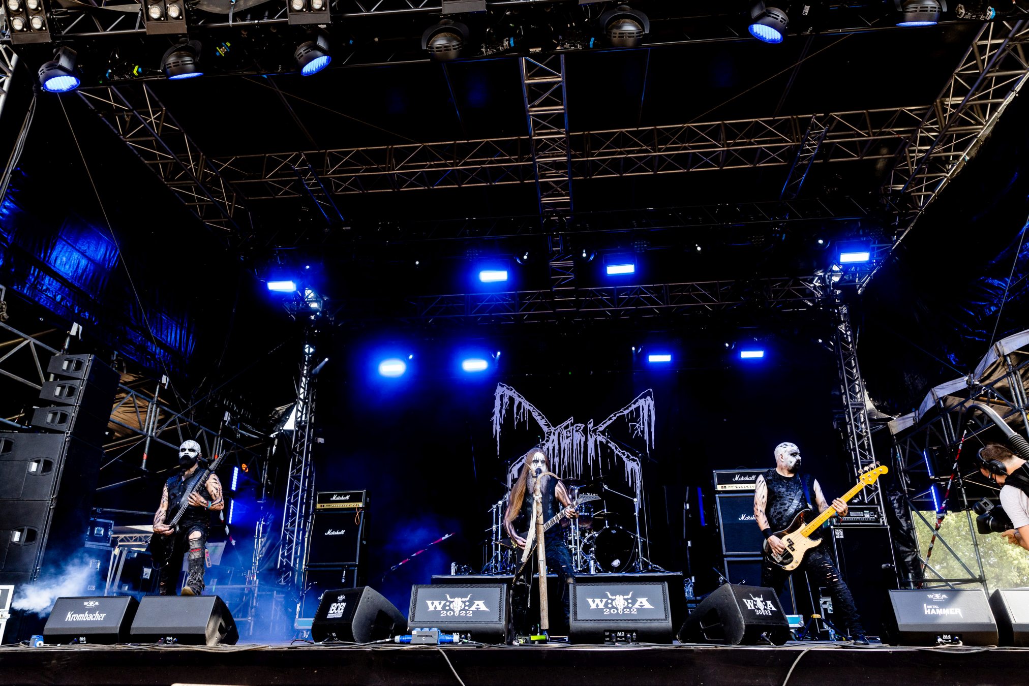 Von der Partymeile ziehen wir weiter ins düstere Tal. Dorthin scheint die Bull Head City durch AUDN mit einem Schlag versetzt worden zu sein. Von der ersten Tönen an, umhüllt uns eine besondere Stimmung und Atmosphäre, die es sogar schaffen die Hitze und den Sonnenschein vergessen zu lassen. AUDN selbst bezeichnen Ihren Stil als atmosphärisch Black Metal. Einen Einschlag in den Doom Bereich können sie jedoch auch nicht leugnen. So nimmt uns diese junge Band in eine Welt voller Trauer, Wut, Hass und Tränen mit. Erst mit dem Verklingen der letzten Töne, nach gewaltigen 45 Minuten, finden wir wieder ins Diesseits zurück. Ein WOA Höhepunkt 2023! Wer Alcest liebt, wird den Isländern vermutlich auch einiges abgewinnen können, wenn diese auch rauher und düsterer klingen.