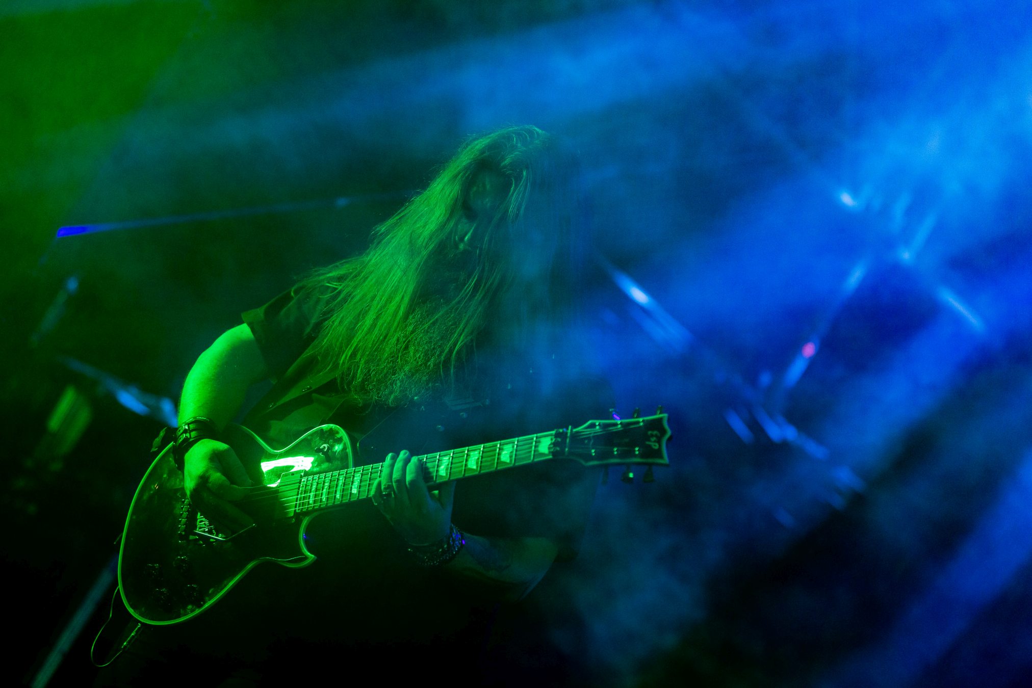 Die Mischung ist heute sehr geprägt vom neuen Kapitel der Band, da viele Songs des aktuellen Releases „Deceivers“ in den Gig mit einfließen. Mitunter gibt es „Deceiver, Deceiver“, „Handshake With Hell“ oder die Live Premieren von „In The Eye Of The Storm“ und „The Watcher“ auf die Zwölf, die allesamt der Zeit Gussows entstammen. Wie dem auch sei, ARCH ENEMY sind Power und Melodie. Dem Konzert ist nur eine Grenze gesetzt, nämlich die Belastbarkeit unserer Nackenmuskeln. Wir sind verwundert, wie viele bei diesem Programm ruhig bleiben können, stören uns aber nicht daran, da wir ja gerade erst festgestellt hatten, dass ARCH ENEMY nun auch die breite Masse trifft. Abschließend wollen wir noch anerkennend festhalten, dass es mit Songs wie „Nemesis“ auch noch solche gibt, die Angela besser zu Gesicht standen und die Band ohne sie diese Entwicklung vermutlich nie durchlaufen hätte.
