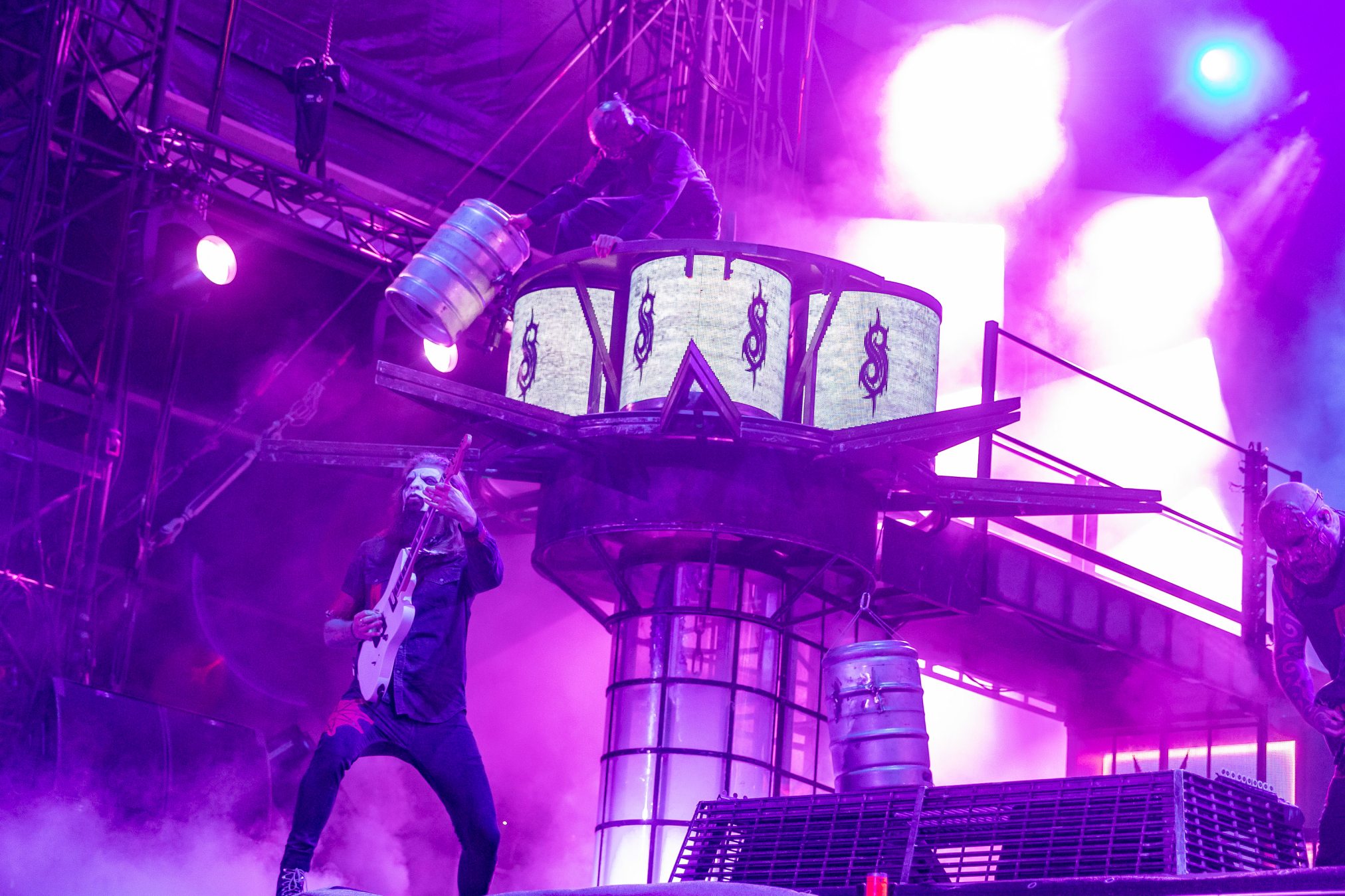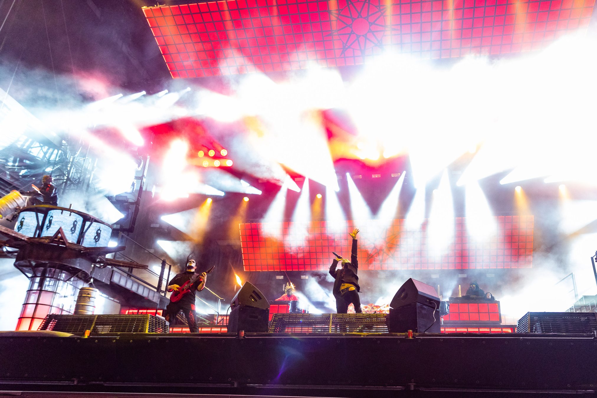 Derart aufgewärmt erwarten wir gespannt den ersten WOA-Auftritt von SLIPKNOT. In den 90ern stand die Formation aus Iowa neben Korn und Limp Bizkit als Synonym für Metal und die Wiederauferstehung einer ganzen Szene. In den letzten Jahren wurde es ein wenig ruhiger um die Männer mit den Masken. Umso erfreulicher, dass sie heuer das WOA beehren. Schon bei „Disasterpiece“ verliert sich die Menge im Headbangen. Man meint, die Band müsse erst mal ein Statement setzen, dass man keine Radiopop-Band, sondern eine ernstzunehmende Metal Band sei. Danach gehen SLIPKNOT es doch mit den melodiösen „Wait And Bleed“ und „Before I Forget“ ein wenig ruhiger an. Über den modernen Metal aufgreifenden „The Dying Song“ und „Unsainted“ geht es dann über “Duality“ zurück zu alter Härte mit „People = Shit“ und „Spit It Out“. Wir können uns nicht so richtig entscheiden, was gewaltiger ist. Die Drums, Corey Taylors Stimme, die mitreißenden Songs? Am Ende ist es völlig egal, was SLIPKNOT abliefert ist groß und verlangt nach einer Wiederholung. Umso mehr erfreut es uns, dass Corey Taylor ankündigt wiederzukommen, wenn wir sie wieder willkommen heißen wollen (idealerweise mit Stone Sour im Gepäck). Ein neuer Wacken-Headliner ist geboren. Wir freuen uns, dass diese längst überfällige Beziehung, heute Ihren musikalischen Anfang gefunden hat. An dieser Stelle müssen wir dem WOA-Team huldigen, da diese Wacken-Wand, diese gewaltige Doppelbühne, immer wieder Konzerte für die Ewigkeit ermöglicht. Vielen Dank, WOA-Team!