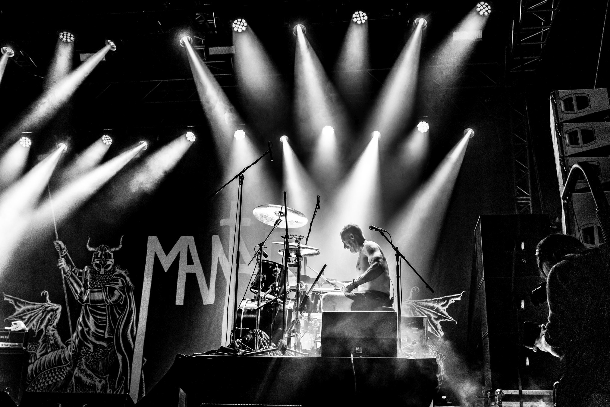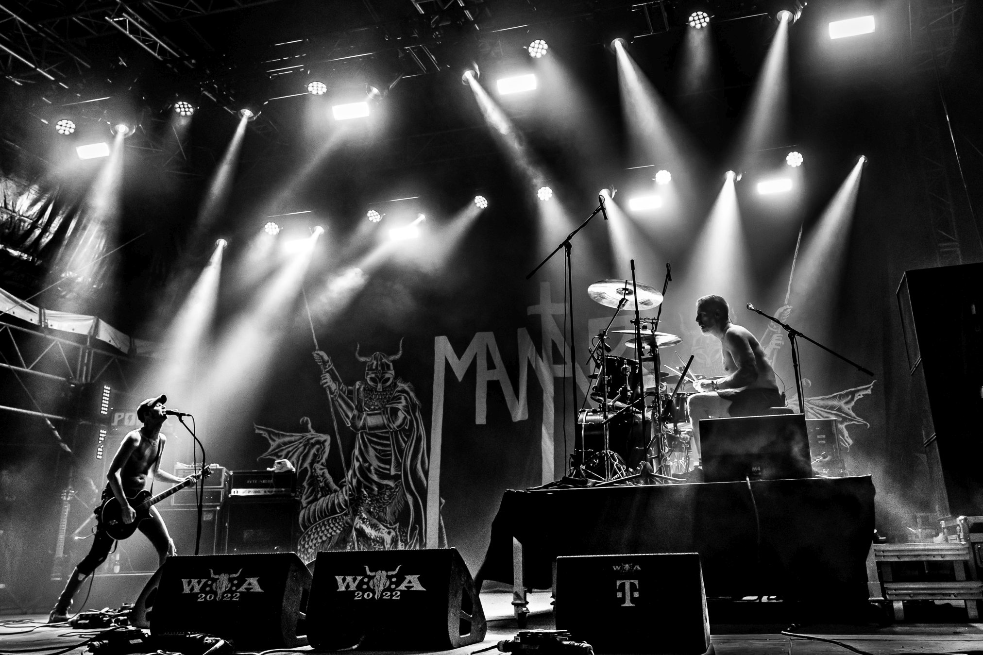 Nun noch schnell mit Twilight-Cheffe Hübner zu MANTAR an die W.E.T.-Stage. Wir hatten das Duo aus Bremen länger nicht Live sehen können und waren daher höchst erfreut, das am heutigen Abend nachholen zu können. Mit ihrer unverkennbaren Position (Auf der Bühne gegenüberstehend) und nur mit Gitarre und Drums, konnten die beiden wieder einmal die Fanschaar mit ihrem rotzigen Back Metal Doom Punk begeistern.