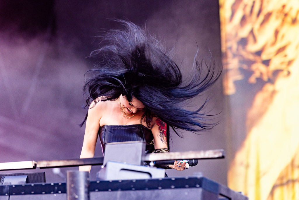 Gerade erst angefangen, ist das WOA 2022 für uns auch schon wieder vorbei. Mit INFECTED RAIN steht unser letzter Act auf der Bühne, der es noch einmal ordentlich krachen lässt. War soeben noch das Headbangen Programm, so hält uns bei INFECTED RAIN nichts mehr. Elena Cataraga steht der Frontfau von ARCH ENEMY in nichts nach und pushed uns eine Stunde lang über den Holy Ground. Vor sich selbst macht das Energiepaket auch keinen halt und fegt wie ein Derwisch über die Bühne, ohne kraftlose Growls, Screams oder cleane Vocals zu offenbaren. Letztere denken wir zuerst als Schwäche ausgemacht zu haben, bis wir verstehen, dass die Sängerin ihre moldawischen Wurzeln stilistisch mit eingebunden hat. Bei „Goodbye“ und „Orphan Soul“ beweist sie eindrucksvoll, dass sie keine gesanglichen Schwächen zu besitzen scheint. Mit der Mischung aus Nu Metal und Melodic Death Metal treibt das Quintett die Fans eine Stunde lang von einem Circle Pit, zum Moshpit und wieder zurück. Bei der Wall of Death merkt man dann doch, dass hier gerade erst eine neue Beziehung entsteht, da eine Ballade nicht die glücklichste Wahl ist und die Todeswand einfach nicht so richtig Ihren Anfang finden will. Das unterstreicht noch mal die Qualität der Band, den Holy Ground mit Neufans dermaßen in Bewegung zu bringen. Wer sich nun motiviert fühlt, in die Band reinzuhören, dem sei gesagt: Geht hin und erlebt sie. Die Alben sind leider sehr clean produziert. Die Kraft dieser Band kommt nur im Ansatz beim Hörer an.