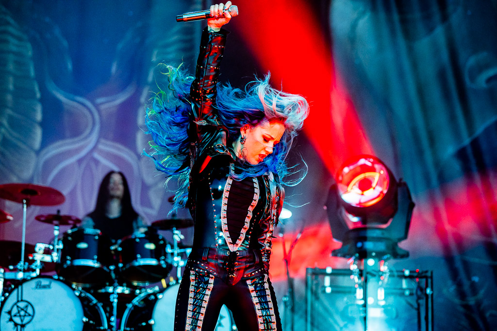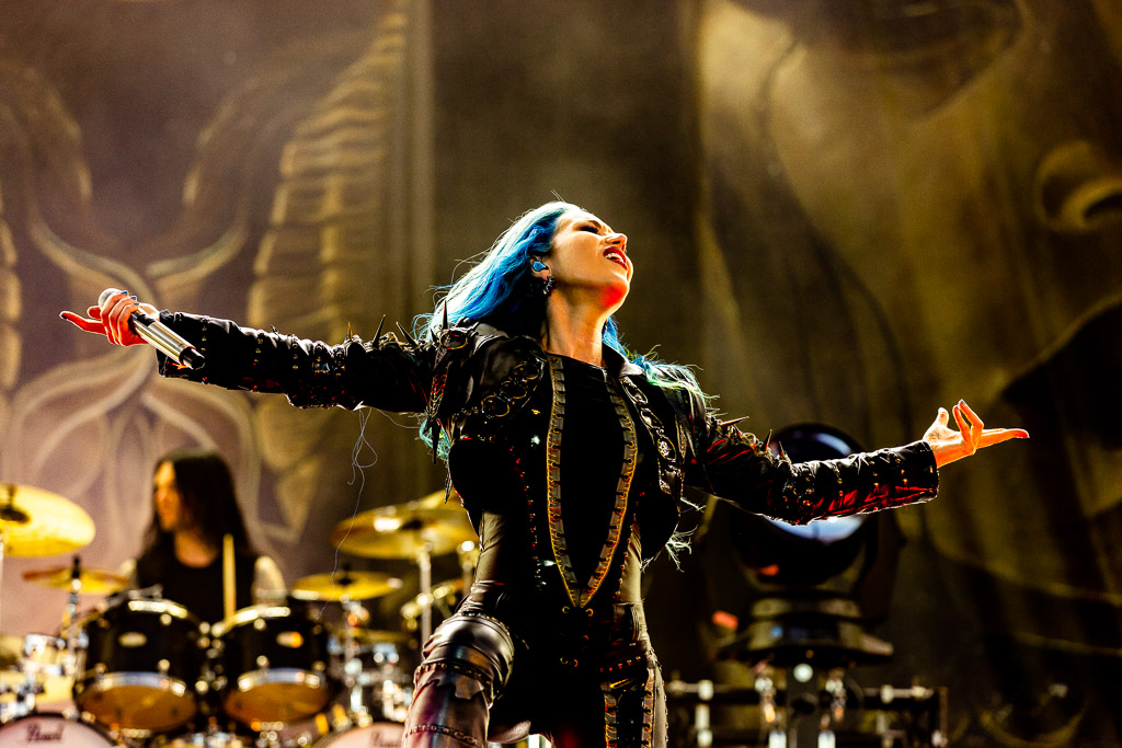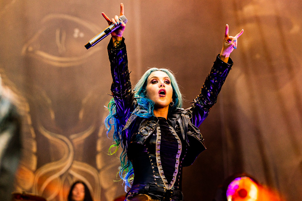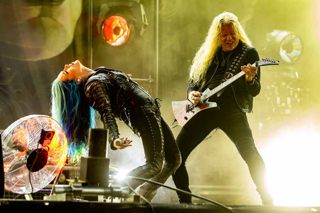 Unser Headliner des Abends, ARCH ENEMY, bedürfte vermutlich keiner einleitenden Worte mehr. Seit über 25 Jahren begeistern die Schweden mit melodiöser Härte. Besonders hervorzuheben sind ihre harmonischen Gitarrensoli und natürlich der Umstand, mit HOLY MOSES zusammen eine der ersten Death Metal Bands mit einer Frau am Mikrofon gewesen zu sein. Angela Gossow hat sich als erste Sängerin der Band hier schon Denkmal gesetzt. Dennoch gab ihr Rückzug in die Rolle der Managerin der Band aus familiären Gründen der Band noch mal einen Schub, da Alissa White-Gluzz noch mal einen neuen Glanz in die Band bringen konnte. Sie ist noch präsenter, noch abwechslungsreicher und stärker am Mikrofon. Von ungefähr kommt das natürlich nicht, da Gossow die damals junge Sängerin mit ausgebildet hat. Mit ihr haben Arch Enemy den letzten Schritt zum Festival-Headliner gemacht und begeistern seither nicht mehr bloß eingefleischte Todesmetaller.