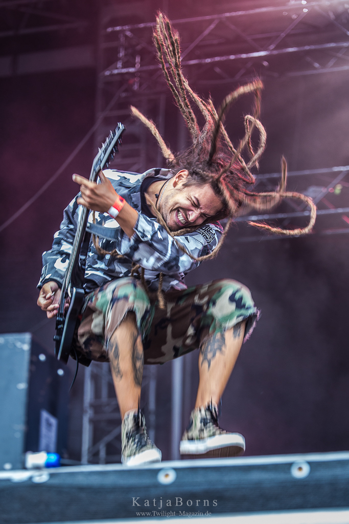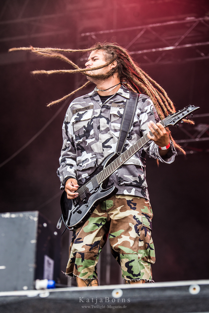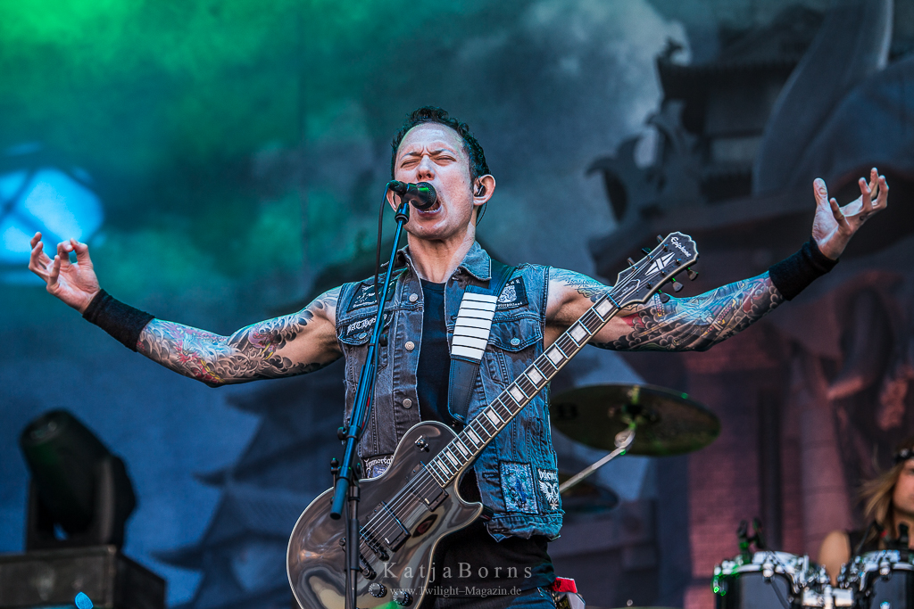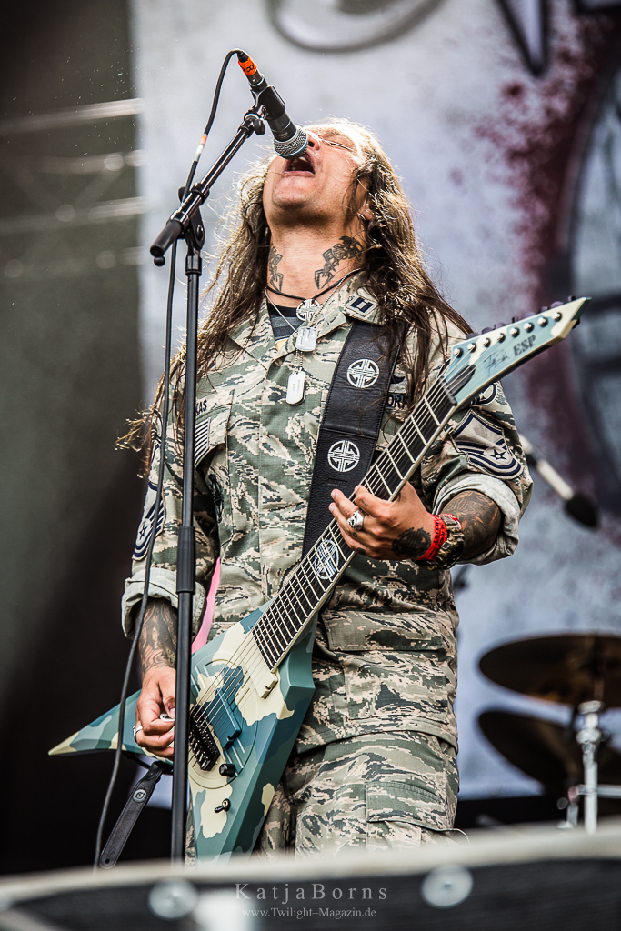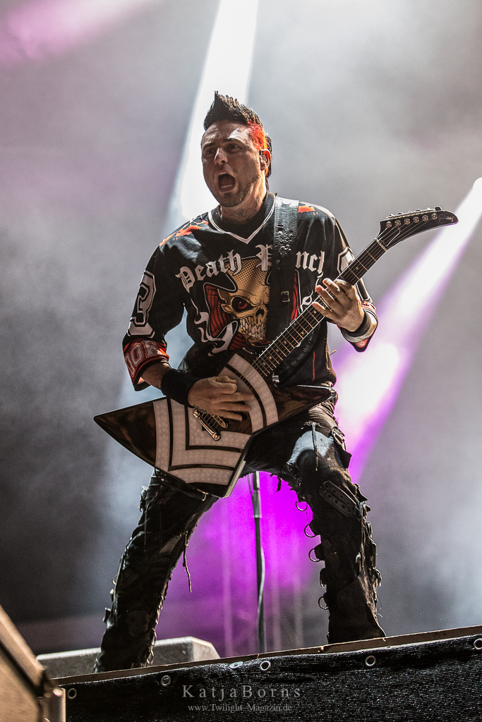 Nach schnellem Wechsel der völlig durchnässten Klamotten und mittlerweile auch trocken von oben ging die Amerikareise in Florida weiter: TRIVIUM überzeugten mit gewohnt gutem Sound und perfekter Show. „Drei Wege“ irgendwo zwischen Metal, Metalcore und Trash begeisterten die Massen bevor zum Abschluss der munteren Amerikareise FIVE FINGER DEATH PUNCH ihrem Namen alle Ehre machten und ihren brachialen Modern Metal einem Kung Fu Schlag gleich vor die Brust der begeisterten Anhänger
