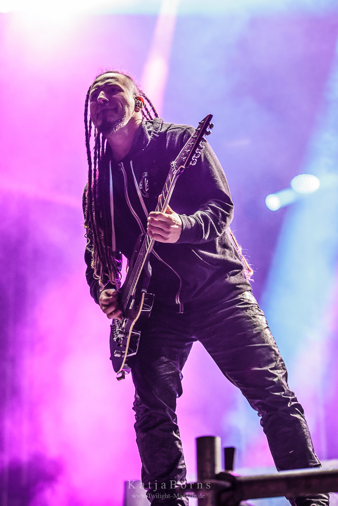 knallten. Eine Riff Supermacht hämmert ihre Grooves in die Nacht, wie man es sonst vielleicht von Pantera kannte, um im nächsten Moment schon wieder stimmgewaltig und sehr melodisch das Publikum zum Zücken der Feuerzeuge zu bewegen. Eröffnet wurde mit „Lift me up“, was auch hätte das Motto des Auftritts sein können. Sichtlich verzückt von Resonanz und Textsicherheit der Massen folgten weitere Hits aus allen 6 Alben inklusive meiner persönlichen Highlights „Jekyll and Hyde“, „Burn M.F.“ und dem Coversong „Bad Company“. Auf eine große Bühnenshow oder spektakuläre Effekt wurde nahezu verzichtet - so stand alleine die Musik im Vordergrund, was auch absolut ausreichte.